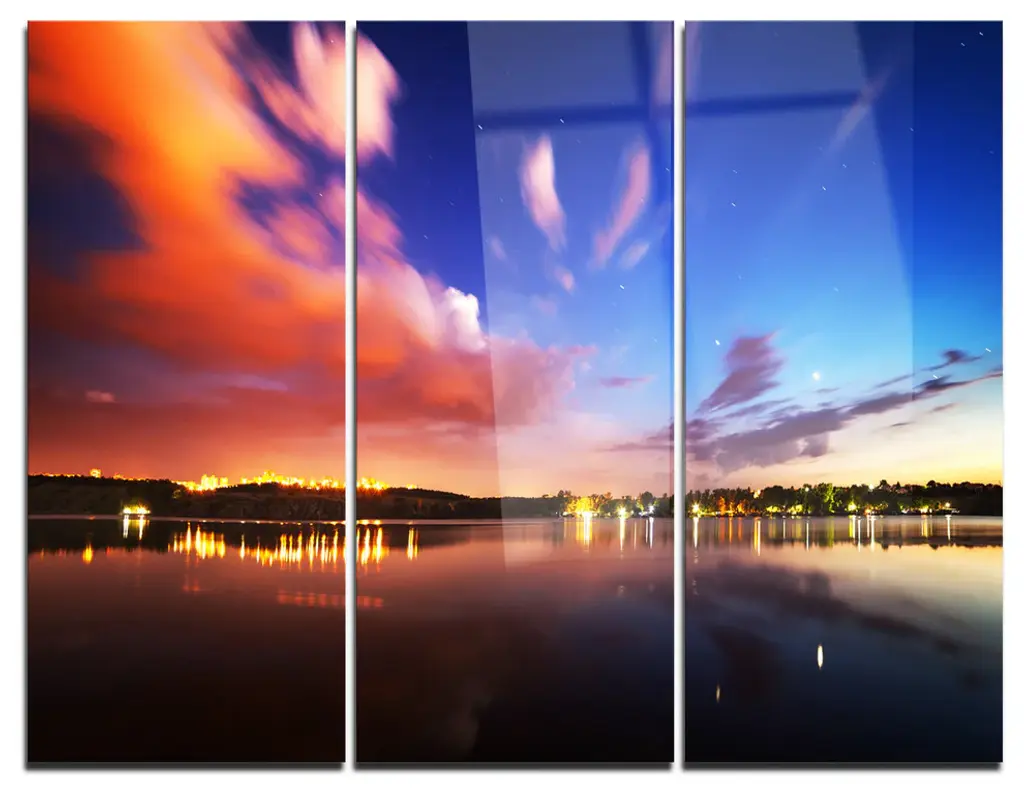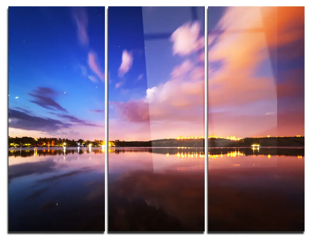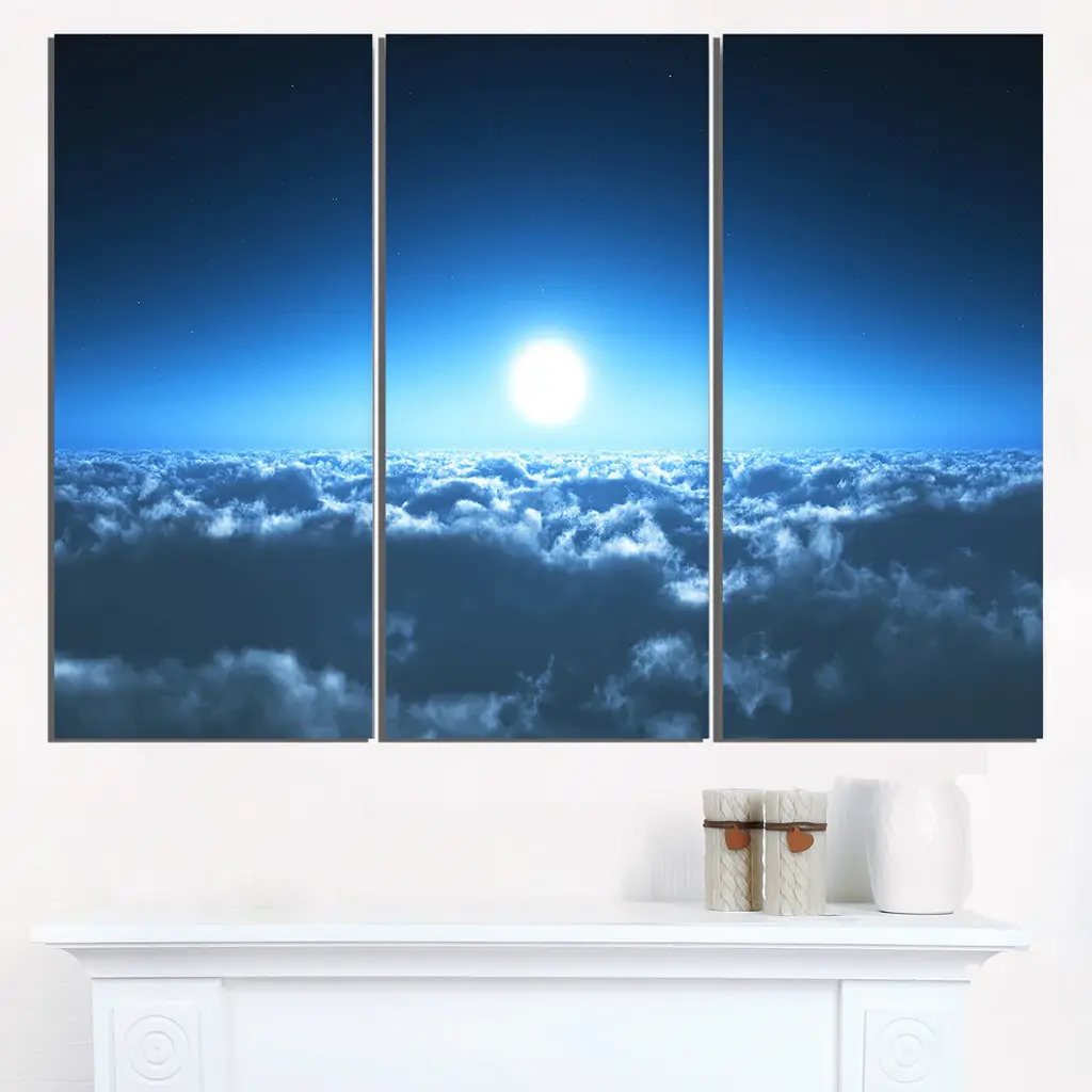 "Night Flight Above Clouds" Metal Landscape, 3 Panels, 36"x28"