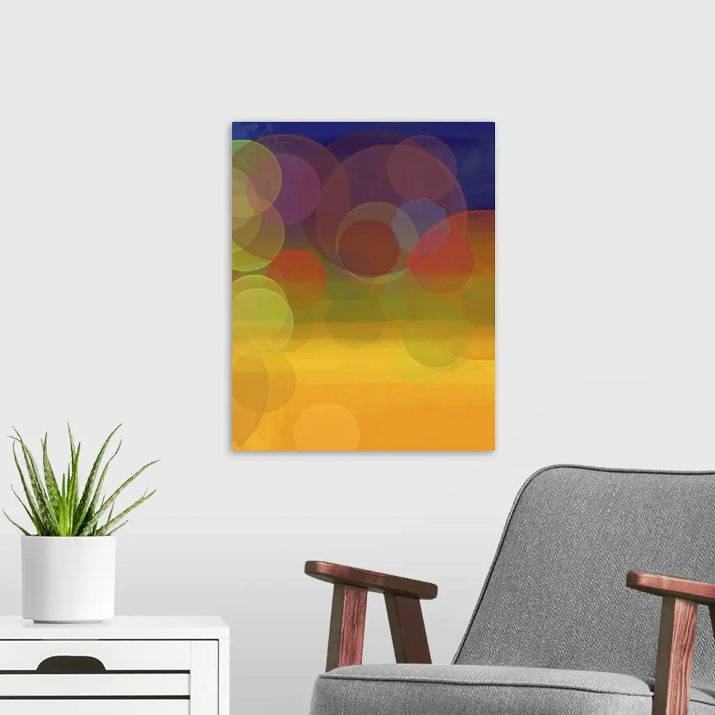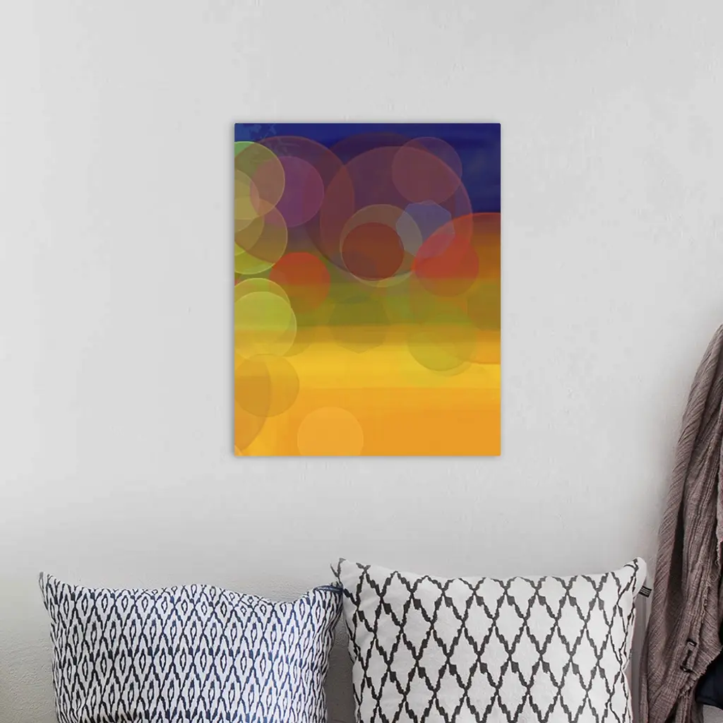 Contemporary abstract digital painting on canvas of the lights in the distance in a very dark night.