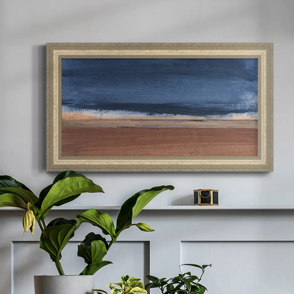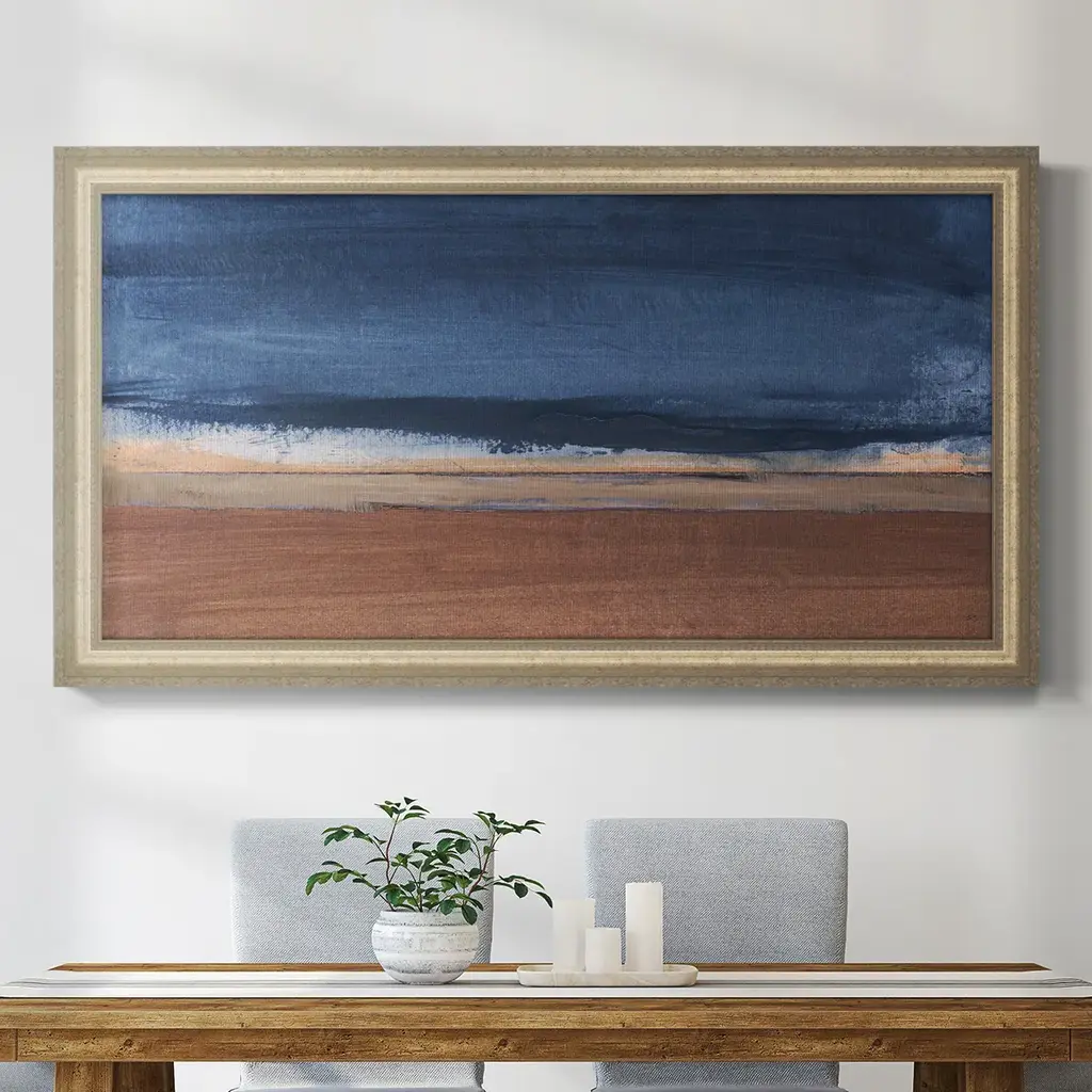 Night Sky Premium Framed Canvas- Ready to Hang A Premium Framed Canvas created to last. Framed in distressed wood and available in an array of sizes and colors Featuring a beveled a solid wood stretcher bar, each piece comes ready to hand 3 SIZES AVAILABLE 21''X37'' - Overall Size 25''X45'' - Overall Size 29''x53'' - Overall Size Each piece is made to order. Each piece comes with hanging hardware. Made in the USA Ready to Hang Giclee Paper Print Acrylic Glass Beveled Matt Board