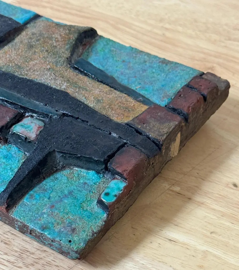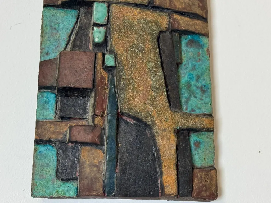 Nijole ŠIvickas, High-Fired Clay Cubist Landscape Wall Panel, Circa 1970s