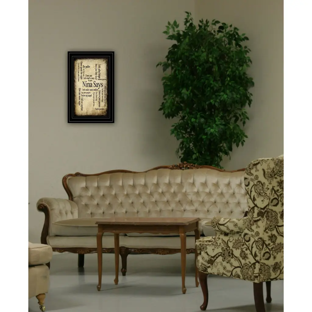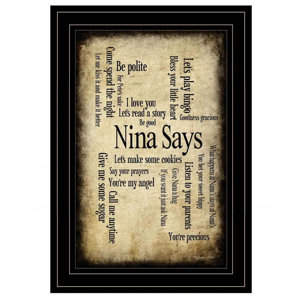 Unique and decorative, this nina says 3 black framed print wall art will leave a lasting impression. This print is a visual artistic expression that allows you to decorate your space in style. Reproduced for you on paper, this hanging decorative accent will be a trendy and fashionable way to dress your walls. Adding this hanging wall art to your space to make your room feel more finished and attractive. Instantly liven up your space with this art that brings color and dimension to your walls. 15" H x 11" W x 1" D