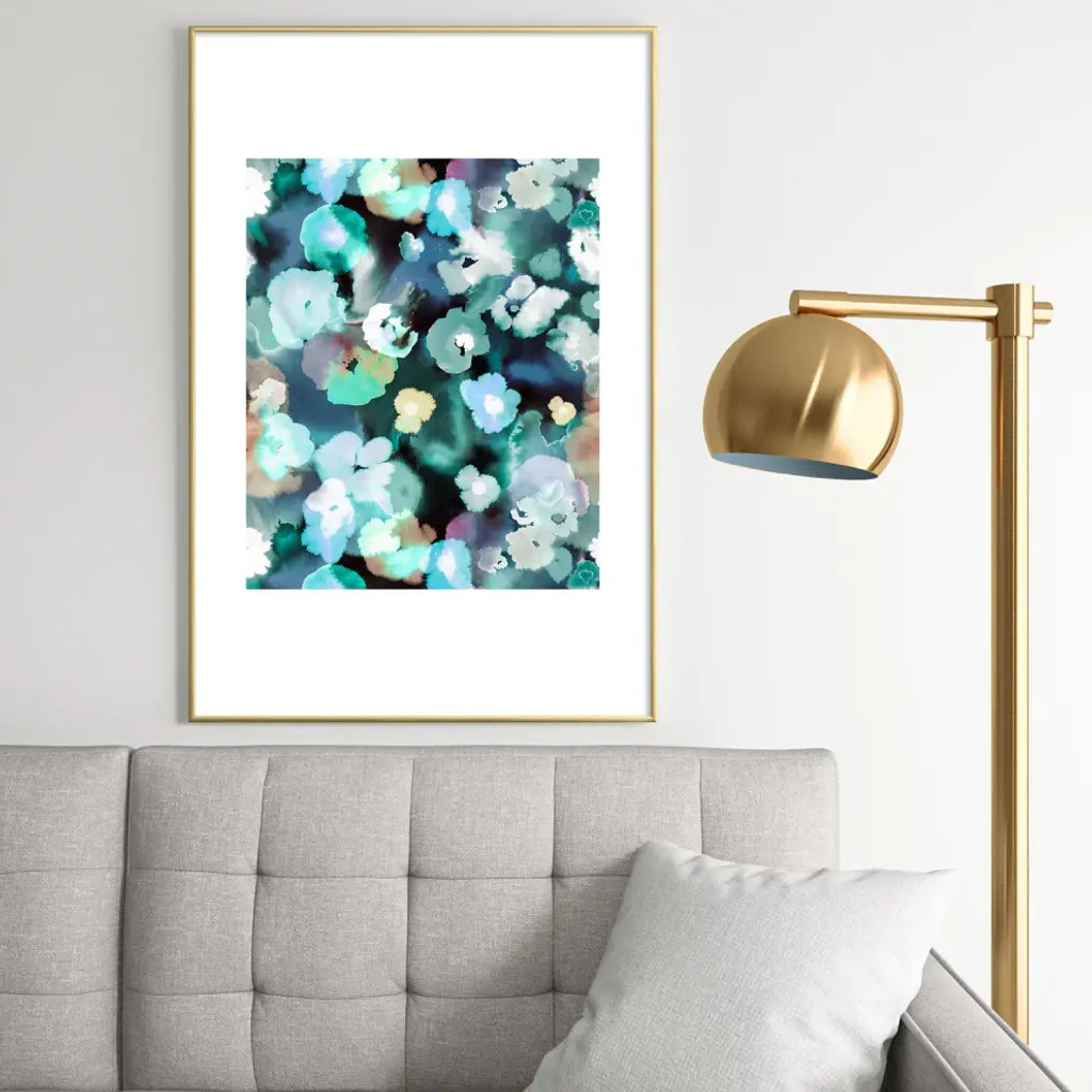 Ninola Design Watery Coastal Flowers Metal Framed Art Print