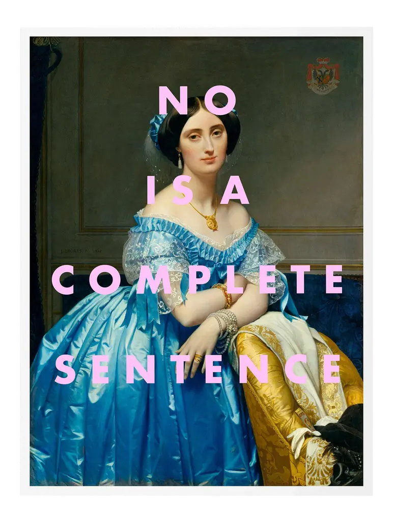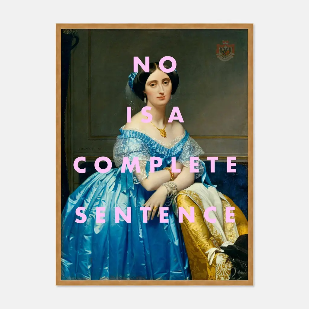 No Is A Complete Sentence By Lara Fowler In Gold Framed Paper, Large Art Print