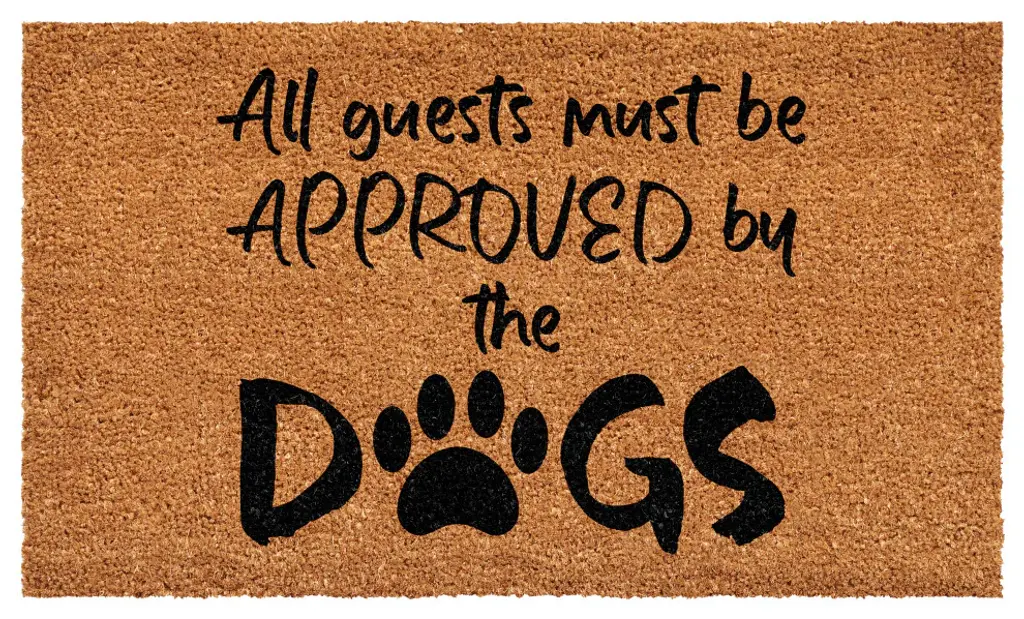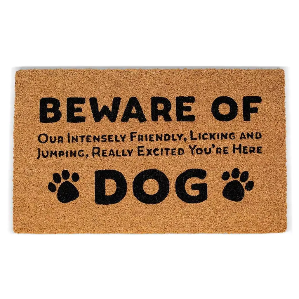 This hilarious Coir Doormat is the perfect gift for anyone who's crazy for canines! The paw-print accented design has a fun message that will make any guest smile. Crafted from coconut husk fiber, the eye-catching mat is natural and eco-friendly. Ideal for high-traffic areas, the mat traps dirt and debris to prevent messes from being tracked into homes. The message and paw print designs are printed directly on the mats with fade-resistant dyes. Since the mat is crafted from natural coir, some shedding is to be expected. Shake off excess fibers or use a soft brush to gently sweep.