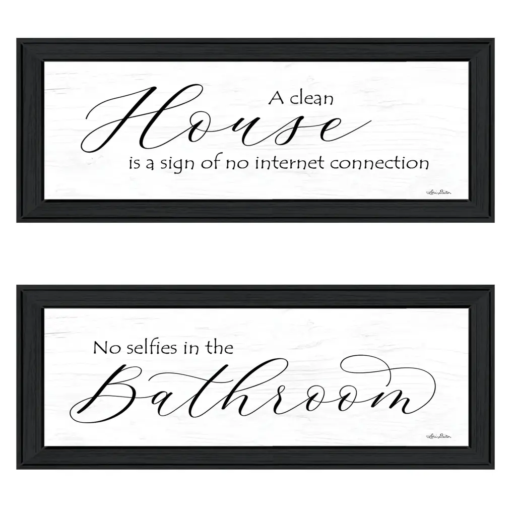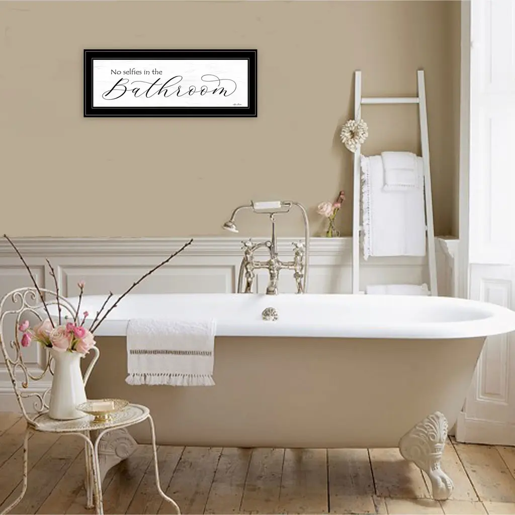 Add an air of fashion to your room and rejuvenate the space with this no selfies in the bathroom 3 black framed print wall art. This print is a visual artistic expression that allows you to decorate your space in style. Reproduced for you on paper, this hanging decorative accent will be a trendy and fashionable way to dress your walls. Hang on your wall to add some up to date fashion and decoration. Utilize this opportunity to create a focal point in the room with this fabulous wall decor option. 11" H x 23" W x 1" D