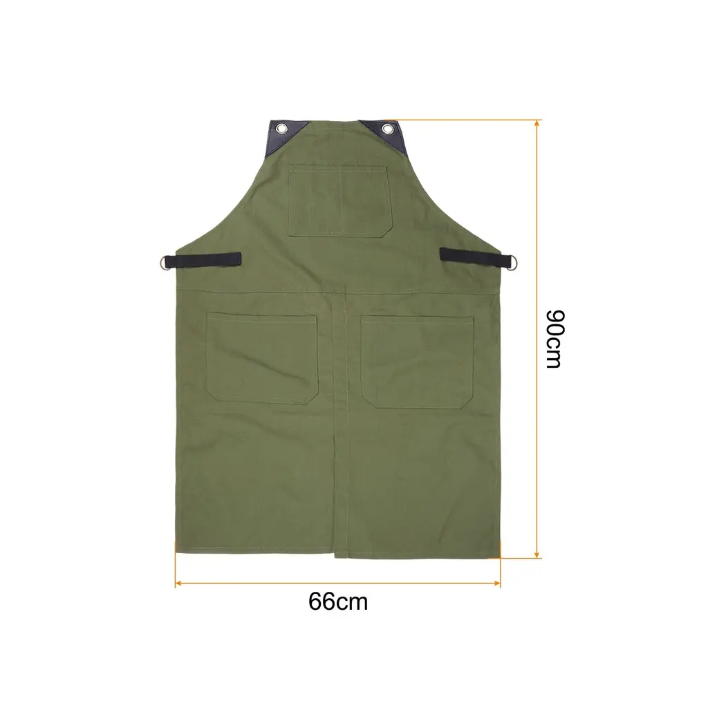 The cooking apron is made of cotton canvas, which is durable and waterproof, easy to finish, not easy to fade, and can be machine washed in cold water many times.The chef apron with adjustable neck strap can be easily changed to fit most sizes, and protects your sides with wrap-around coverage to prevent your clothes from getting wet or damaged.The waistband is equipped with a buckle on one side and a loop on the other side to be able to be fastened quickly. With a split-leg design, the coverage ranges from chest to mid-calf.There are 6 large pockets of the apron, which is convenient for storing various items, from brushes and pencils in the studio or art pottery to thermometers, cookware and timers in the kitchen, mobile phones, recipe cards, seasoning packets, etc.The cotton apron can be used in the kitchen, garden, art class, coffee shop, flower shop and any type of studio. Suitable for art, artists, pottery, ceramics, crafts, painting, cooking, baking, cleaning and gardening.Note: Do not place the apron near any hot cookware or flame.