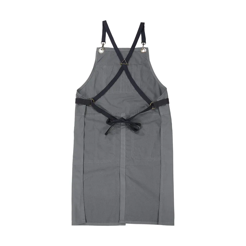 No-Tie Twill Apron 90x66cm Split-Leg Chef Apron With 6 Pockets - Grey