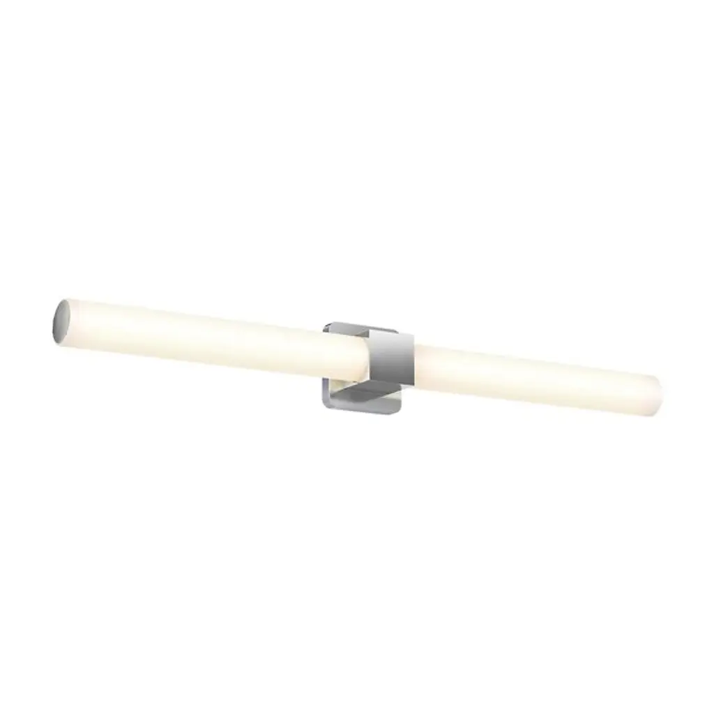 The Noble Two LED Vanity Light by DALS Lighting adds a crisp and cool touch to the master and guest bathrooms that it illuminates. Anchored by a square backplate and arm that holds a cylindrical frosted glass body that is neatly capped on either end, this fixture can be oriented horizontally or vertically to lend an evenly diffused layer of energy-efficient light to surroundings. Within the canopy, use the switch-selectable color temperature feature to best compliment your environment for a smart addition to spaces.
