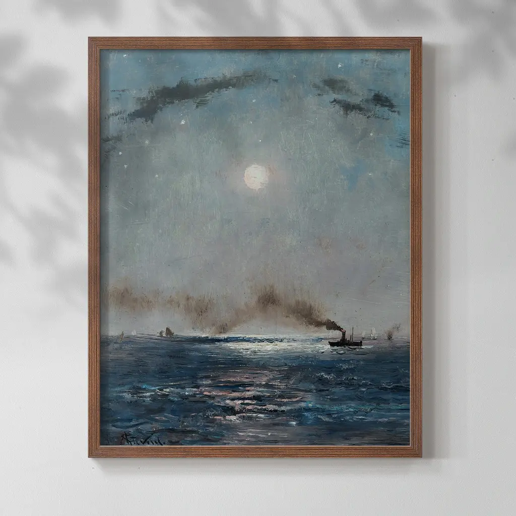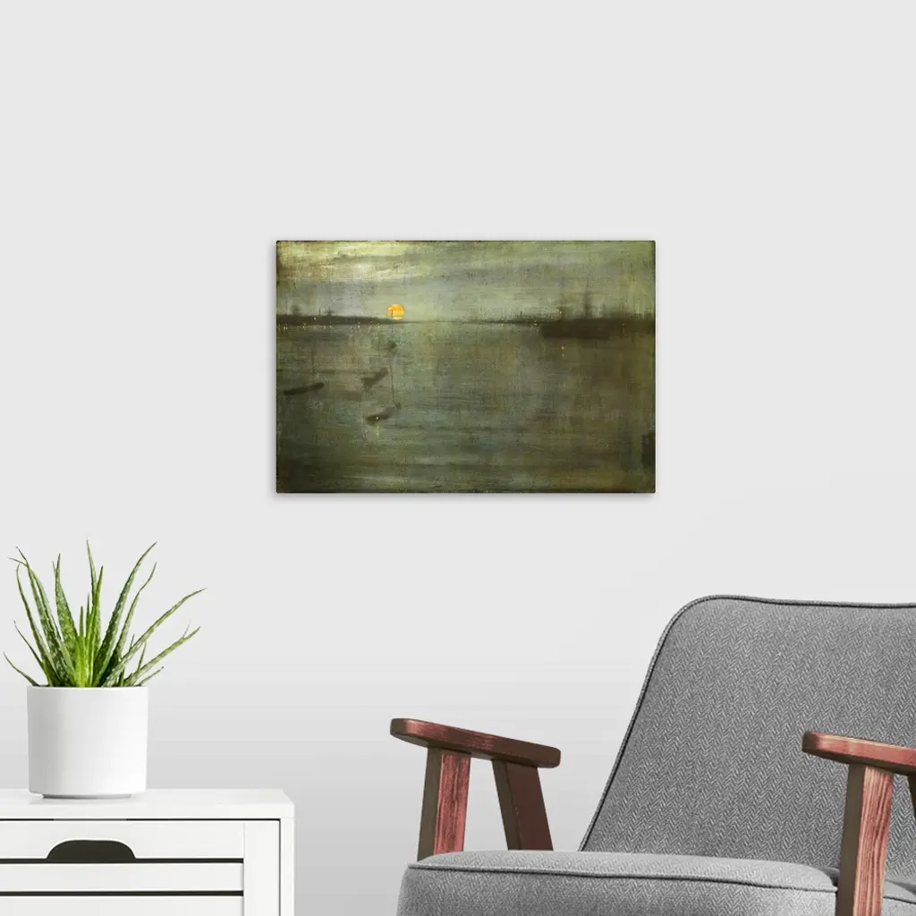 "Art should be independent of all clap-trap - should stand alone and appeal to the artistic sense of eye or ear," said the daringly unconventional painter James McNeill Whistler. Born in the United States, Whistler spent most of his adult life in Paris and London. To emphasize that his paintings have no narrative overtones - that they instead are aesthetic arrangements of color and shape on flat surfaces - he gave them titles derived from music, such as arrangement, symphony, and nocturne. One of his first such paintings, Nocturne: Blue and Gold - Southampton Water, depicts a hazy, moonlit night on an inlet of the English Channel, southwest of London. Although the work is based on his experience of the location, the specifics of place are inconsequential. Instead, Whistler was interested in the subtle harmony of shades of blue, punctuated by touches of gold. By blurring and obscuring the shapes of the distant boats, he made color and form the primary focus of the painting. Often misunderstood and sometimes openly ridiculed when they were first exhibited, Whistler's luminous nocturnal visions were forerunners of the experiments in abstraction that would follow in the next century.