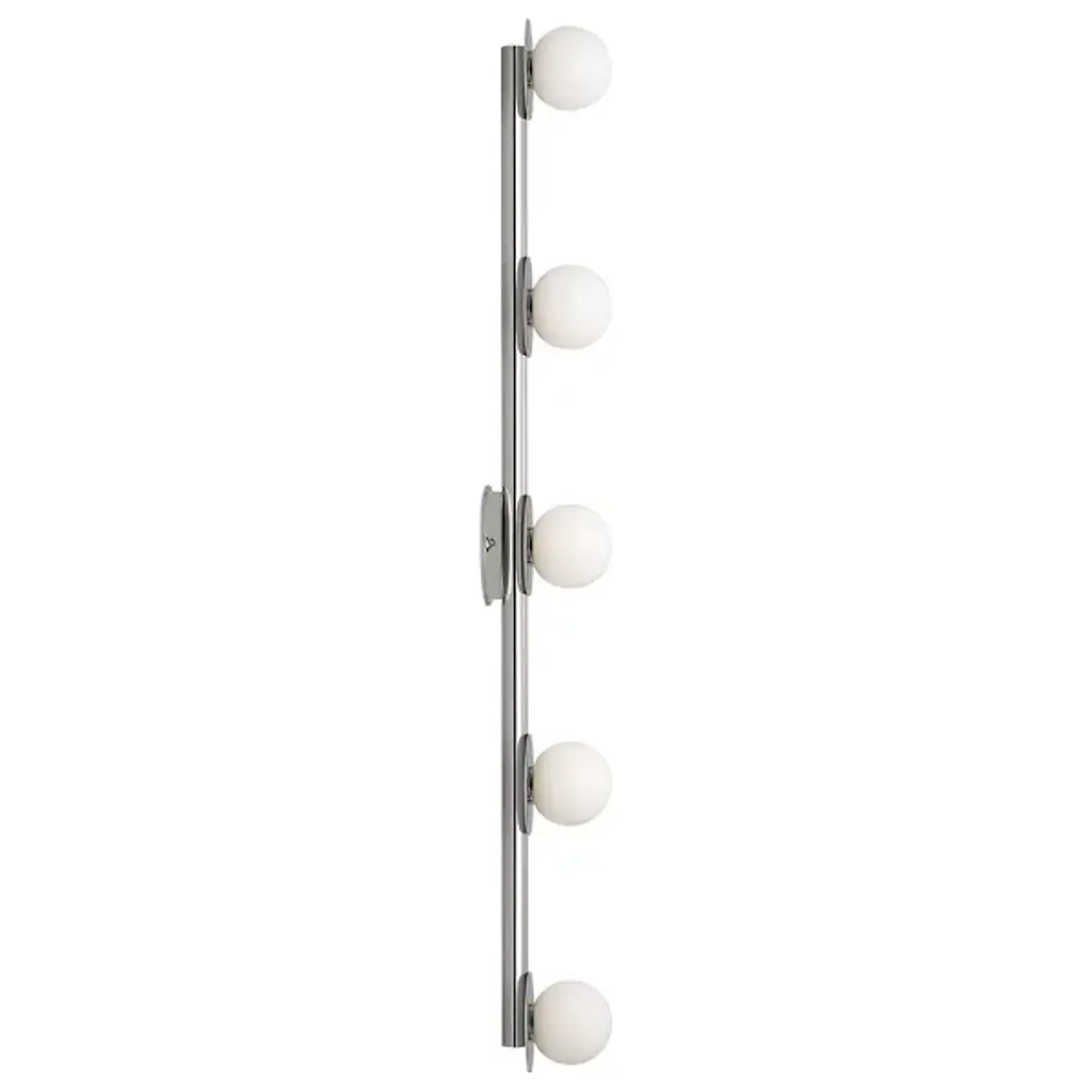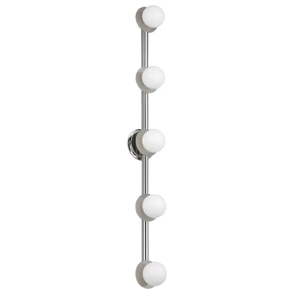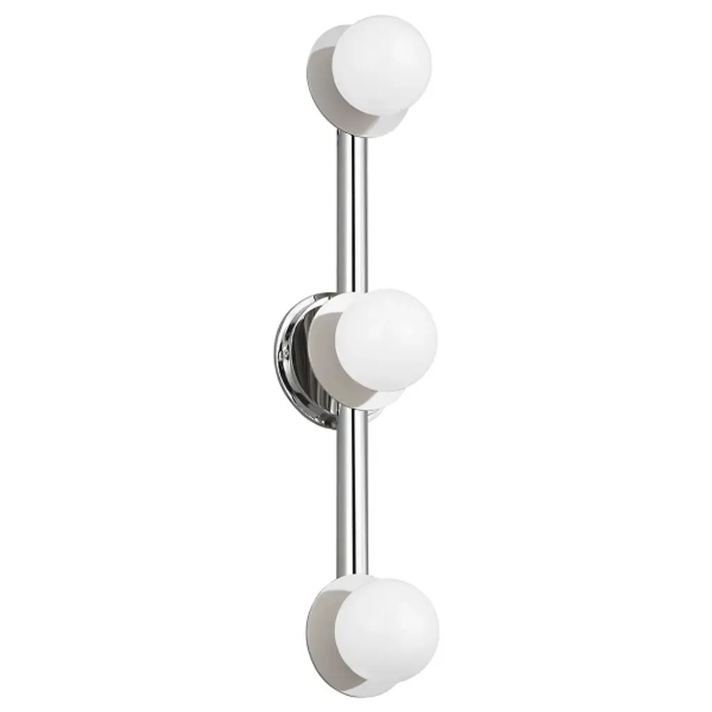 The Nodes Vanity Light from Visual Comfort Studio combines minimalism with bold design, showcasing Kelly’s signature blend of mixed materials and curvilinear forms. Milk glass globes radiate light against metal discs, creating a striking contrast. Each fixture can be used with or without the discs for versatile styling. Hanging fixtures feature black fabric cords, while pivot sconces offer flexible installation options, either as cord-and-plug or hardwired, making this collection both functional and stylish.