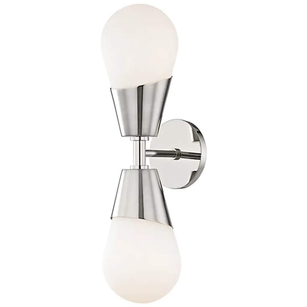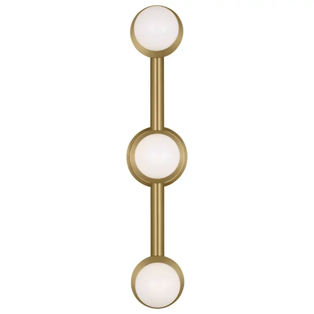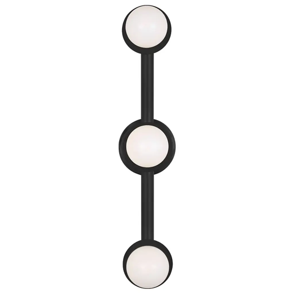 The Nodes Vanity Light from Visual Comfort Studio combines minimalism with bold design, showcasing Kelly’s signature blend of mixed materials and curvilinear forms. Milk glass globes radiate light against metal discs, creating a striking contrast. Each fixture can be used with or without the discs for versatile styling. Hanging fixtures feature black fabric cords, while pivot sconces offer flexible installation options, either as cord-and-plug or hardwired, making this collection both functional and stylish.