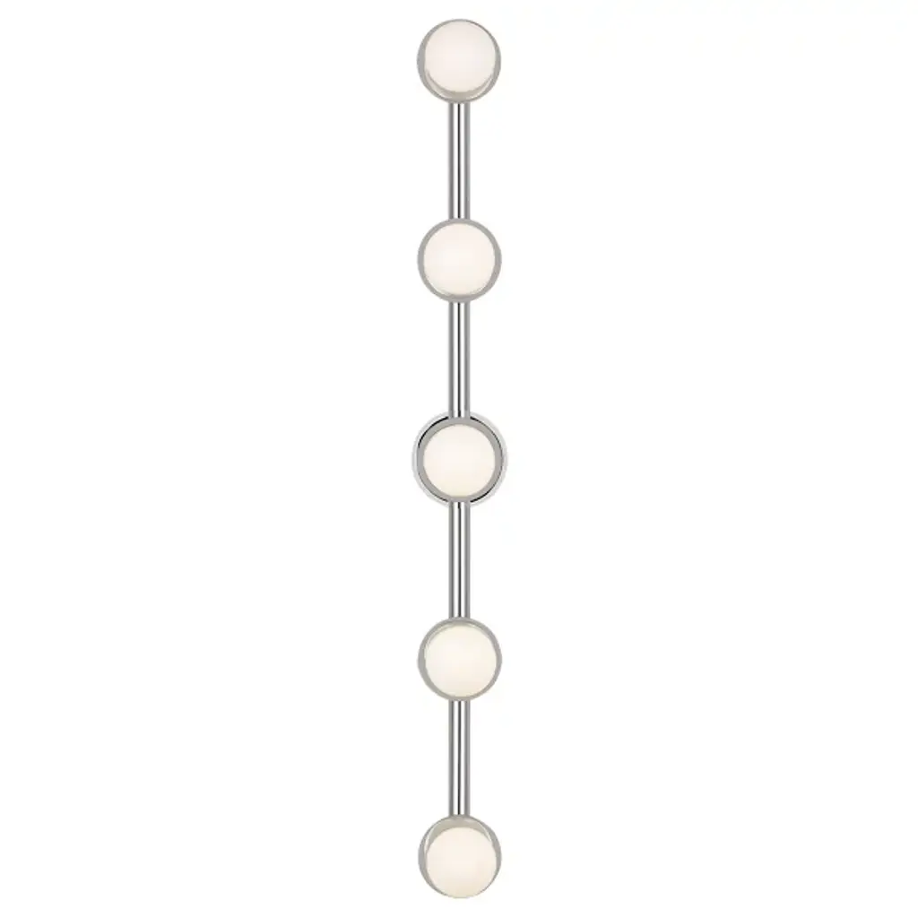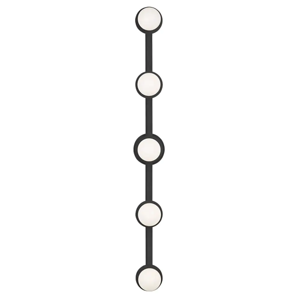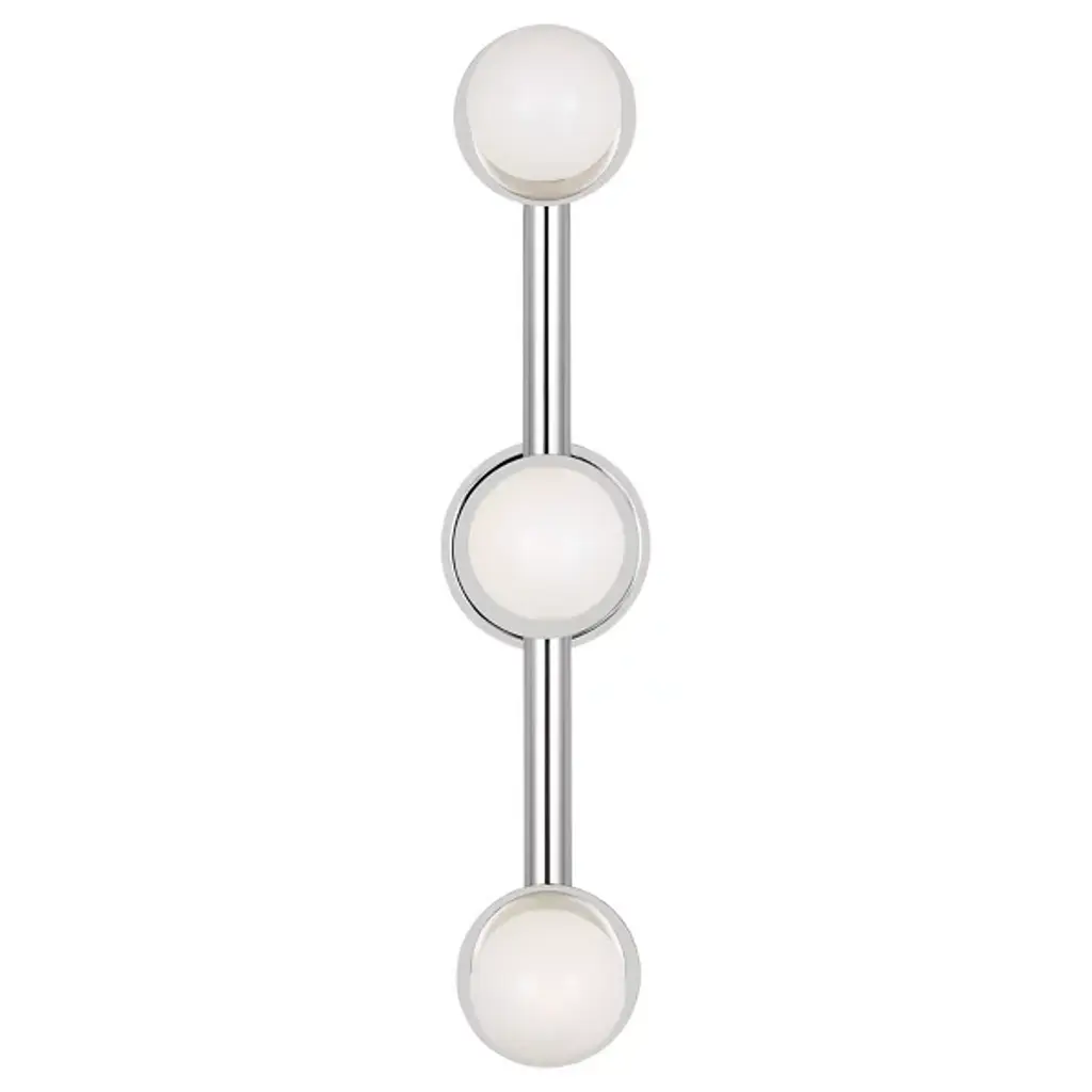 The Nodes Vanity Light from Visual Comfort Studio combines minimalism with bold design, showcasing Kelly’s signature blend of mixed materials and curvilinear forms. Milk glass globes radiate light against metal discs, creating a striking contrast. Each fixture can be used with or without the discs for versatile styling. Hanging fixtures feature black fabric cords, while pivot sconces offer flexible installation options, either as cord-and-plug or hardwired, making this collection both functional and stylish.