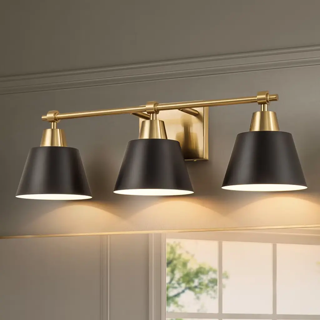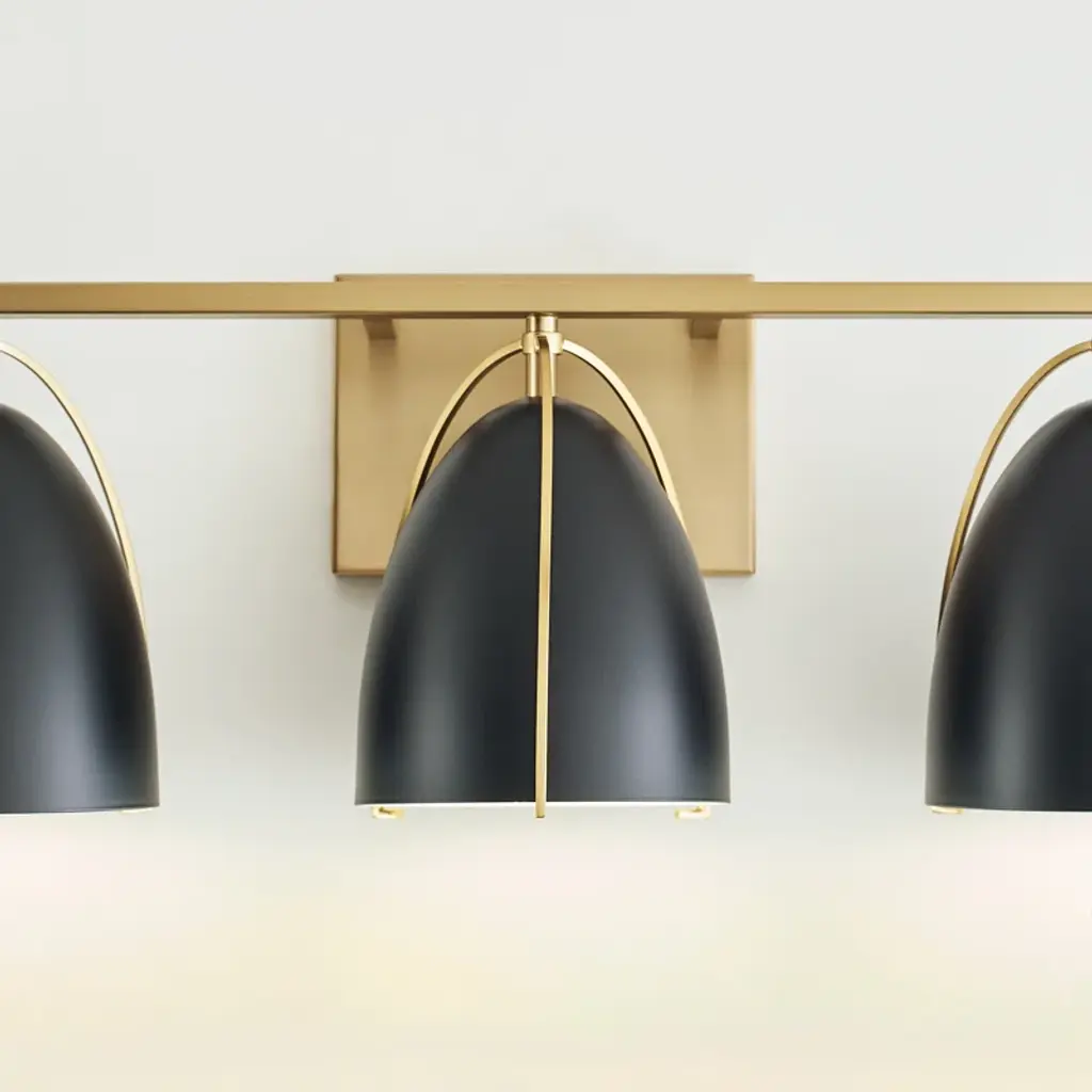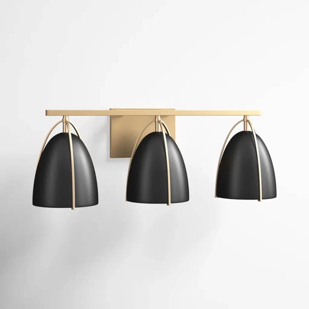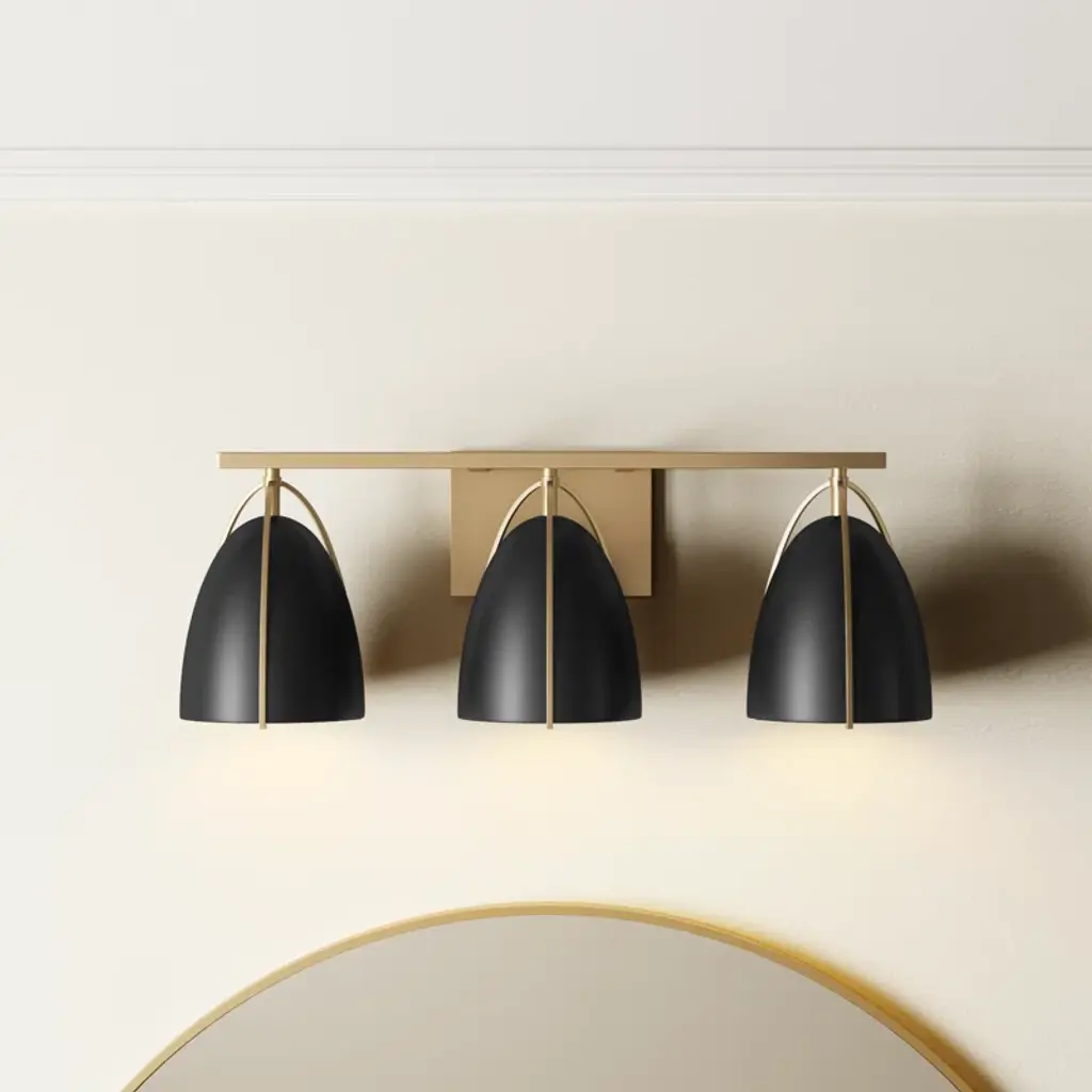 This 3-light dimmable vanity light has a modern, clean-lined design with a dash of industrial influence. Offering an updated take on a classic silhouette, it's made from metal with a frosted white glass shade held inside sleek support arms. This fixture hangs from a rectangular backplate and has a straight support arm. Plus, it's endlessly versatile: It's safe to use in damp locations and compatible with dimmer switches. And best of all, a bulb is included for added convenience.