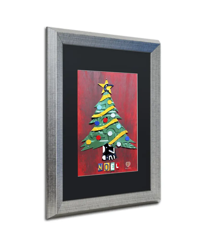 Title: Noel Christmas TreeArtist: Design TurnpikeProduct Type: Silver Framed Canvas ArtSize: 16" x 20"Made in the USA.David Bowman creates handmade license plate art and maps under the name Design Turnpike. As a boy, David loved license plates. His interest in maps, geography, travel and crafting grew to inspire the art he creates today. He continues to brainstorm and produce various new designs along with his classic license plate maps.An 11" x 14" giclee print under acrylic in an 16" x 20" silver frame. Giclee (jee-clay) is an advanced printmaking process for creating museum quality fine art reproductions. A clear acrylic facing is added to protect the print. The piece is fully assembled by professional framers and comes ready to hang.Materials:Canvas: 100% Cotton, Frame: MDF, Matte: Paper-Laminated 100% Wood Fiber Core, Facing: Acrylic