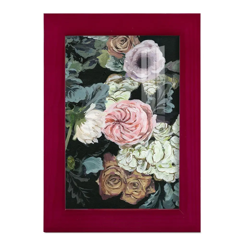 Noir Arrangement II -EZ SWITCH Framed Print w/glass-Cherry Red A delightful, framed print. Featuring a solid wood frame with real wood glass. This premium print is giclee quality. In addition, every frame features a removable back and table top stand. This allows you to change your art in the future or to just stand the art on a table for a new look. We are sure you'll enjoy our new series of EZ SWITCH Framed Art. Solid Wood Frame Real Glass Removable / Replaceable Art Built in Tabletop Stand Sizes range from 4x6 up to 12x15 - buy just one or pair them up as sets as you see fit.