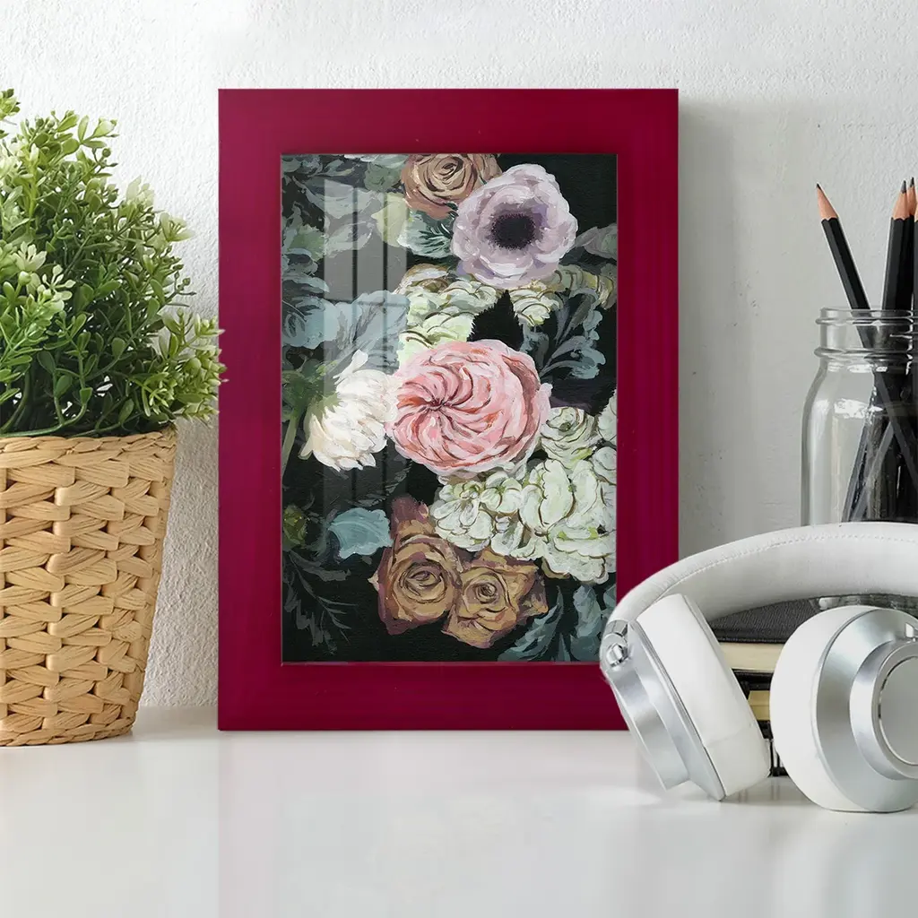 Noir Arrangement II -EZ SWITCH Framed Print w/glass-Cherry Red A delightful, framed print. Featuring a solid wood frame with real wood glass. This premium print is giclee quality. In addition, every frame features a removable back and table top stand. This allows you to change your art in the future or to just stand the art on a table for a new look. We are sure you'll enjoy our new series of EZ SWITCH Framed Art. Solid Wood Frame Real Glass Removable / Replaceable Art Built in Tabletop Stand Sizes range from 4x6 up to 12x15 - buy just one or pair them up as sets as you see fit.