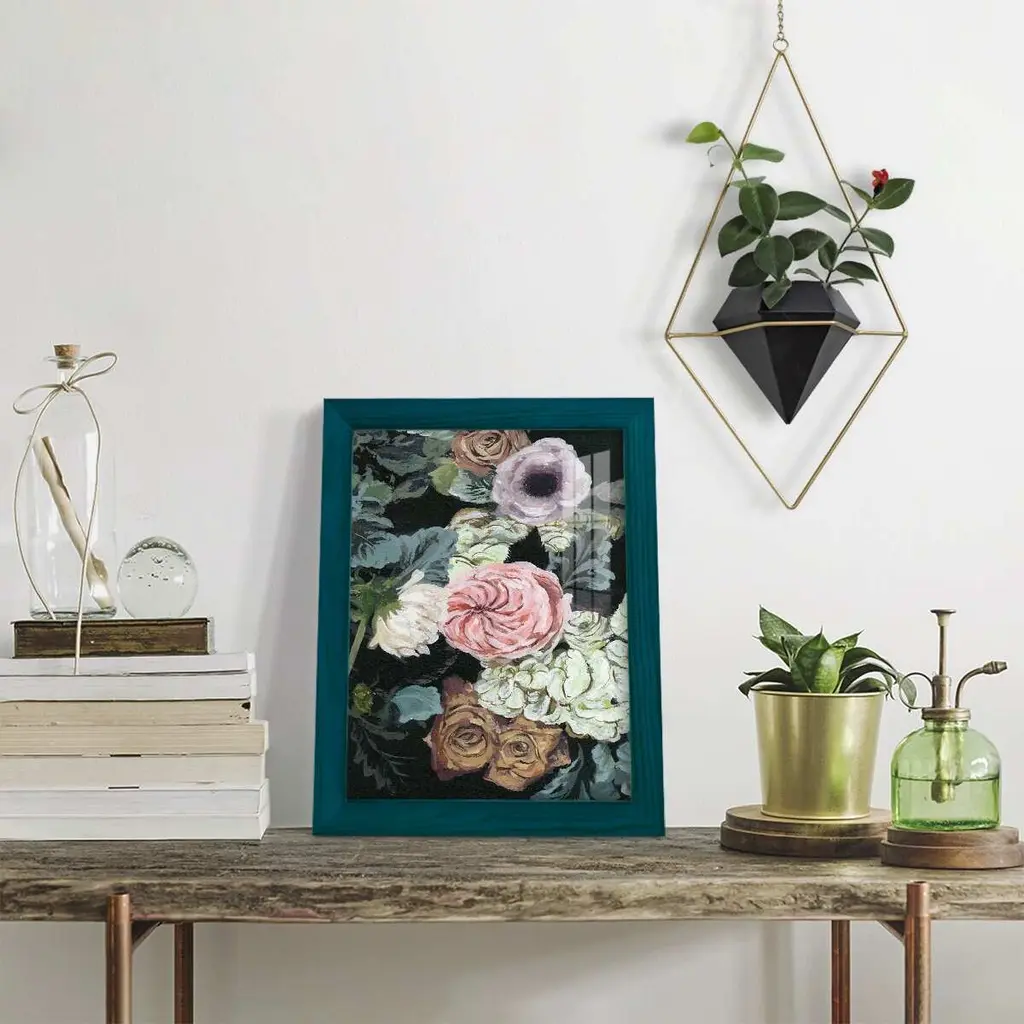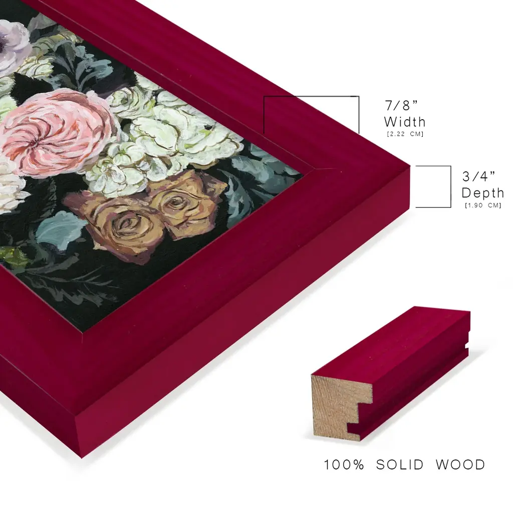 Noir Arrangement II -EZ SWITCH Framed Print w/glass-Cherry Red A delightful, framed print. Featuring a solid wood frame with real wood glass. This premium print is giclee quality. In addition, every frame features a removable back and table top stand. This allows you to change your art in the future or to just stand the art on a table for a new look. We are sure you'll enjoy our new series of EZ SWITCH Framed Art. Solid Wood Frame Real Glass Removable / Replaceable Art Built in Tabletop Stand Sizes range from 4x6 up to 12x15 - buy just one or pair them up as sets as you see fit.