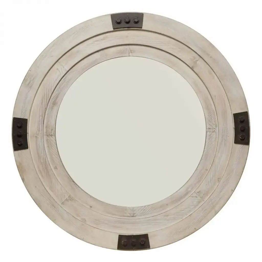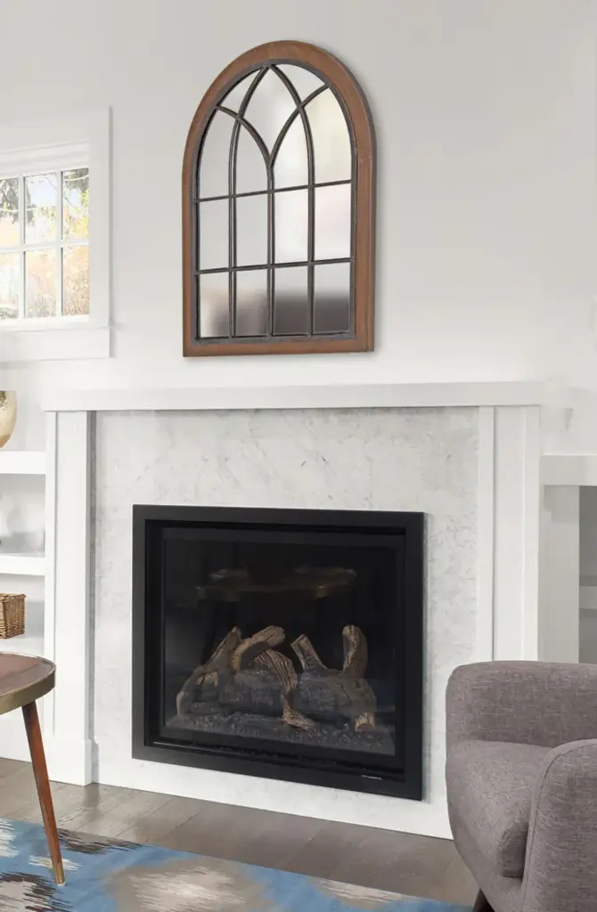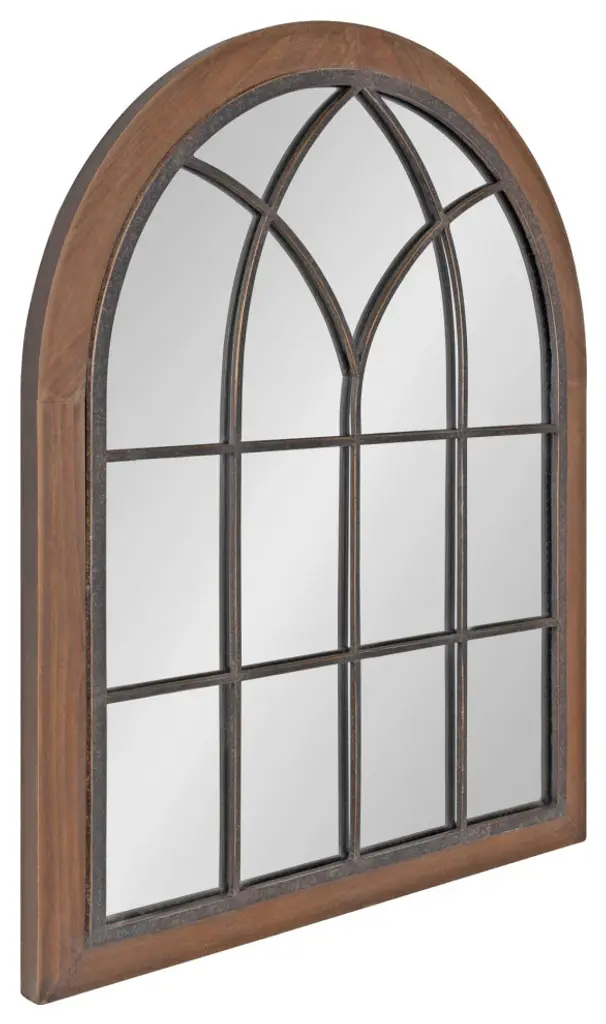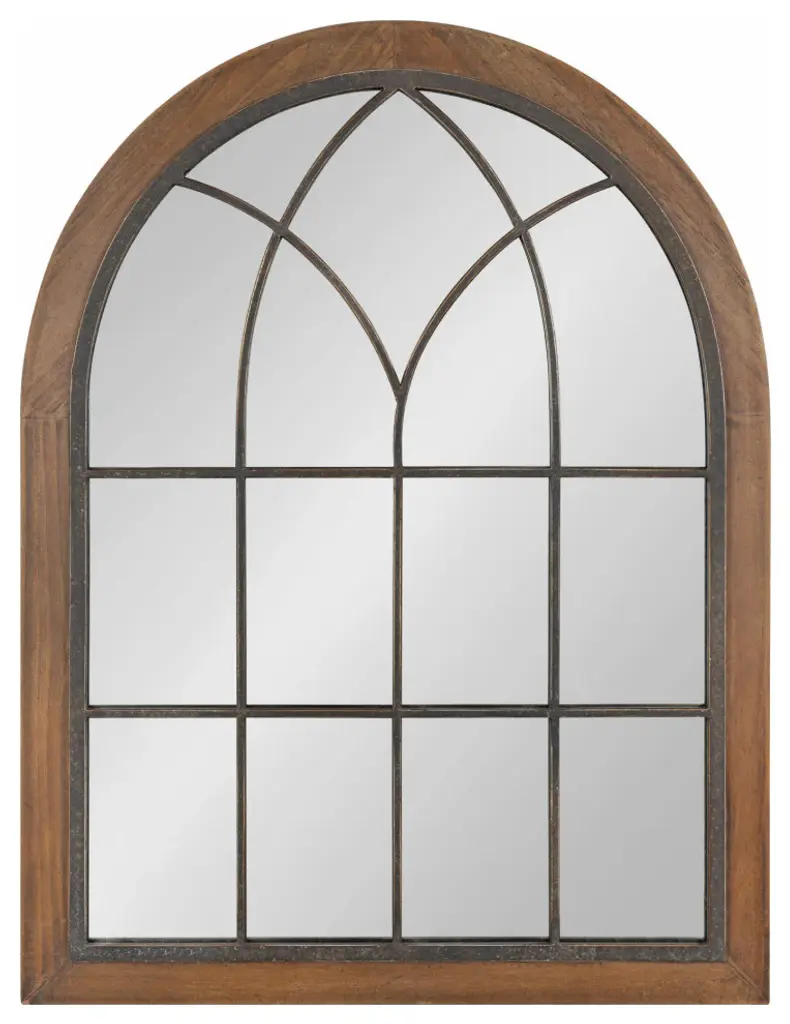 Craft a timeless and effortless farmhouse look within your home thanks to the classic style of the Nola wall mirror. This mirror features a windowpane-inspired design with a 15-panel design and an arched shape. The frame has a wooden construction with a rustic brown finish, hand-distressed to make each mirror in this collection one-of-a-kind. The Nola wall mirror is great for creating a large focal point, standing at 28 inches tall and 22 inches wide. Hang this windowpane wall mirror in any farmhouse-inspired living room, bedroom, entryway, kitchen, bathroom, or dining room. Adding a decorative mirror to any room of your home expands the space by reflecting light sources, creating a more open-concept space. It is an excellent feature on its own or in multiples to create a vibrant, symmetrical wall display. The Nola windowpane wall mirror is easy to install, with metal D-ring hangers securely attached to the back for hanging in seconds. Create a sophisticated timeless windowpane wall decor piece that will become a conversation starter in multiple generations of homes.• FARMHOUSE DESIGN: The Nola wall mirror features a hand-distressed rustic brown finish to elicit images of a classic farmhouse windowpane• QUALITY MATERIALS: We craft each Nola mirror with a sturdy wood frame, an ornamental metal overlay, and a reflective glass surface• LARGE SIZE: This mirror is 28 inches high by 22 inches wide for an eye-catching wall statement that does not overshadow your other decor pieces• DECORATIVE AND PRACTICAL: Hang this mirror in any room of the home to reflect light and bring dimension and openness to your space• EASY TO HANG: Install this mirror on any wall with easy-to-use metal D-ring hangers