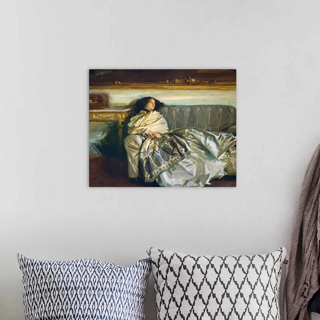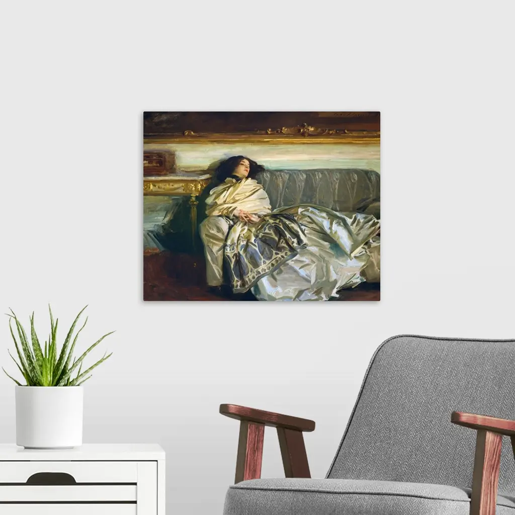 Nonchaloir (Repose), by John Singer Sargent, 1911, American painting, oil on canvas. Sargent painted his niece, Rose-Marie Ormond Michel, in a casual pose. His masterly brushstrokes delineate his niece's fingers, hair, cashmere shawl, and satin skirt