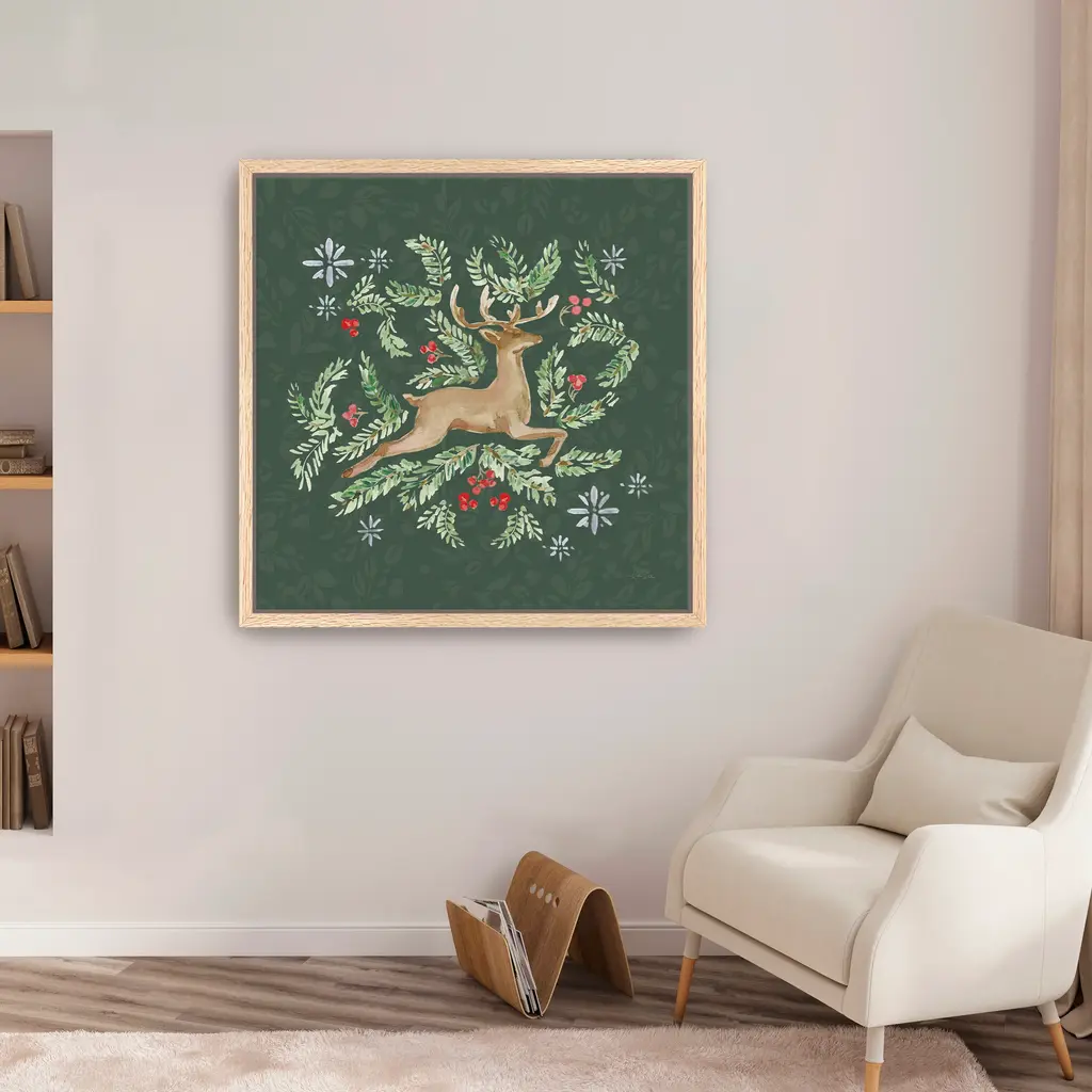 Celebrate the magic of the season with this charming Christmas reindeer canvas print, where whimsy meets winter wonder. With its festive palette and playful elegance, it brings warmth and cheer to any holiday space. Our Gallery Wrap Canvas Prints are proudly assembled with high quality materials in California, USA. Each piece is printed on a thick, archival grade canvas using Giclee technology. It is then hand-stretched by our experienced artisans over solid wood bars, which will not warp over time. The final product is a piece personally crafted for you to confidently display on your wall. Care and Assembly: Ensure that the location of your piece has little to no exposure to heat, sunlight, and moisture. Wipe clean, only if needed. Each piece includes hanging hardware to hang on your wall horizontally.