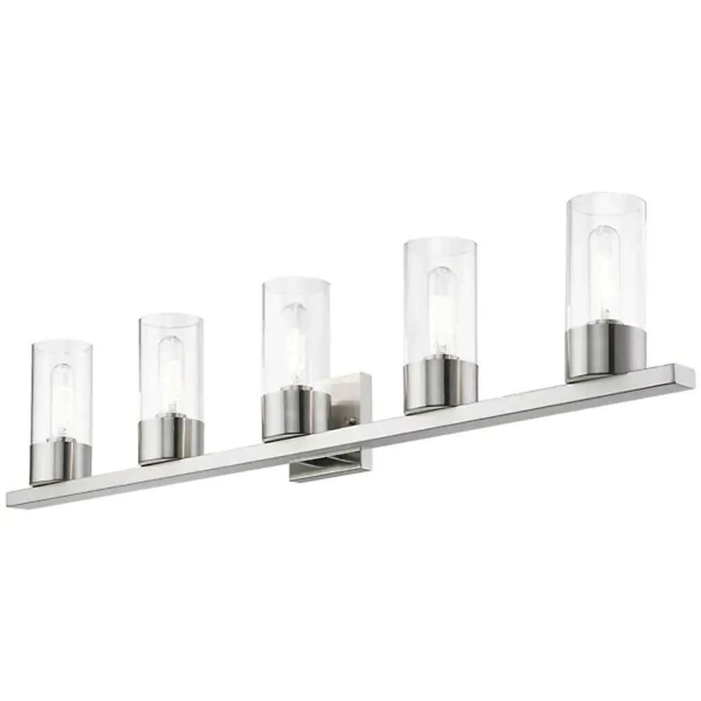 Look your best with the Norma Vanity Light by Alder & Ore. A lovely frame of steel takes on a linear formation. Onto this frame is fixed a collection of cylindrical glass shades. Each shade contains its own incandescent bulb, which gives your room a brilliant glow. Place this light fixture above your wall-mounted mirror and easily complete your grooming routine. The Norma Vanity Light is made available in multiple light quantities so that you can choose the light fixture most suited to your needs.