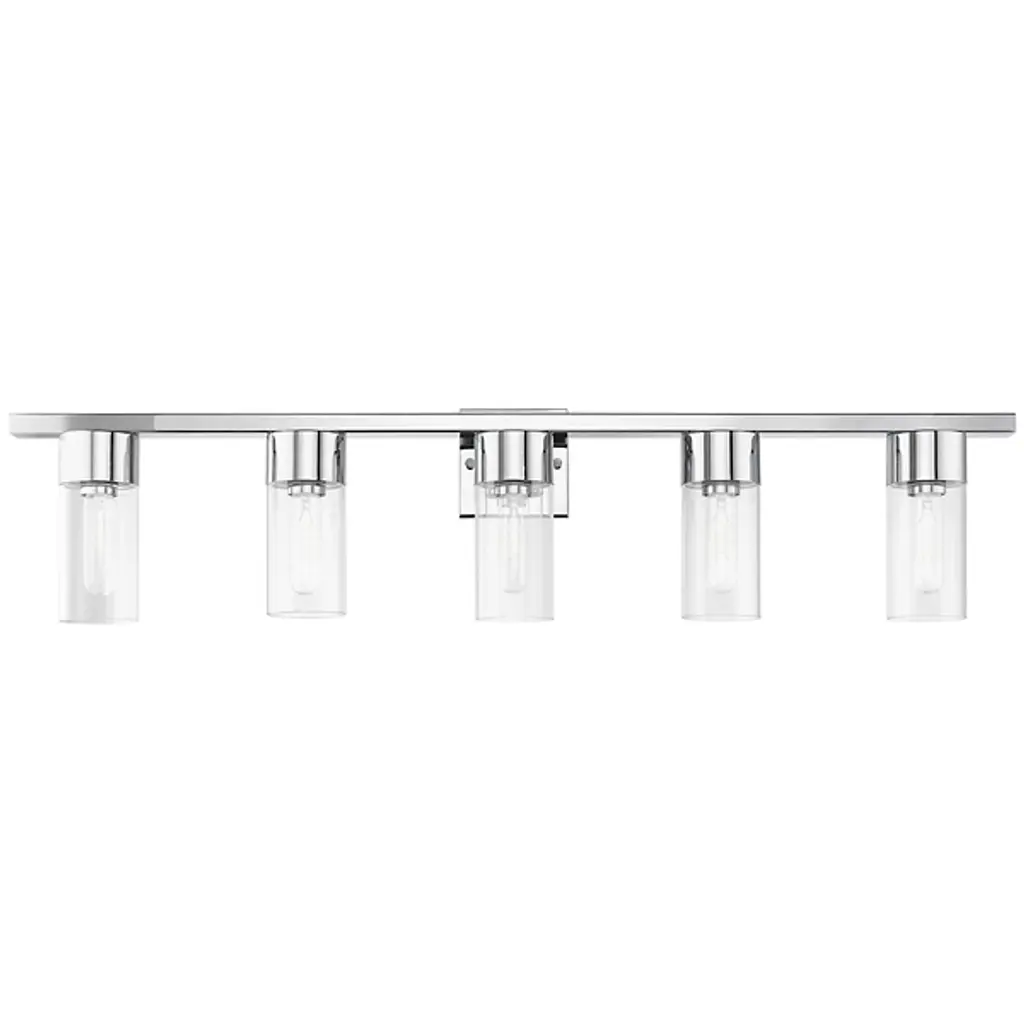 Look your best with the Norma Vanity Light by Alder & Ore. A lovely frame of steel takes on a linear formation. Onto this frame is fixed a collection of cylindrical glass shades. Each shade contains its own incandescent bulb, which gives your room a brilliant glow. Place this light fixture above your wall-mounted mirror and easily complete your grooming routine. The Norma Vanity Light is made available in multiple light quantities so that you can choose the light fixture most suited to your needs.