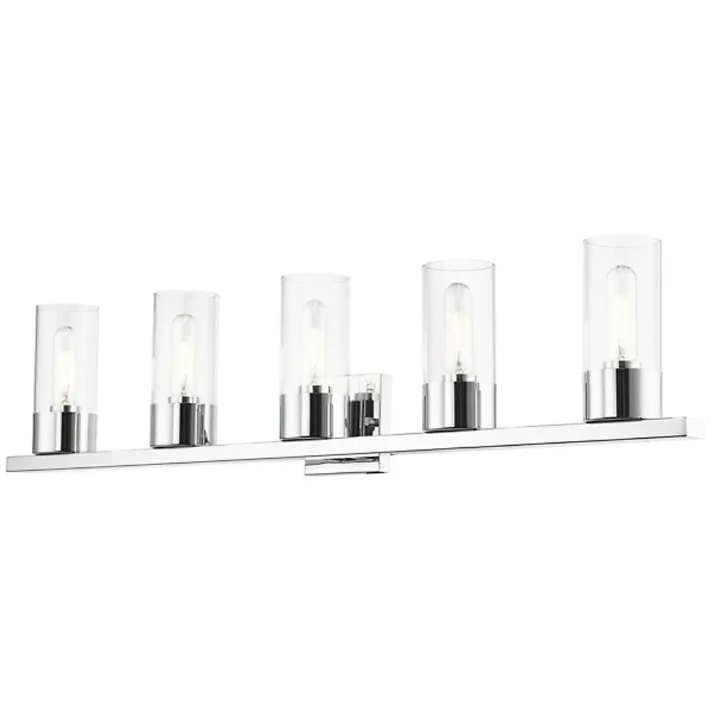 Look your best with the Norma Vanity Light by Alder & Ore. A lovely frame of steel takes on a linear formation. Onto this frame is fixed a collection of cylindrical glass shades. Each shade contains its own incandescent bulb, which gives your room a brilliant glow. Place this light fixture above your wall-mounted mirror and easily complete your grooming routine. The Norma Vanity Light is made available in multiple light quantities so that you can choose the light fixture most suited to your needs.
