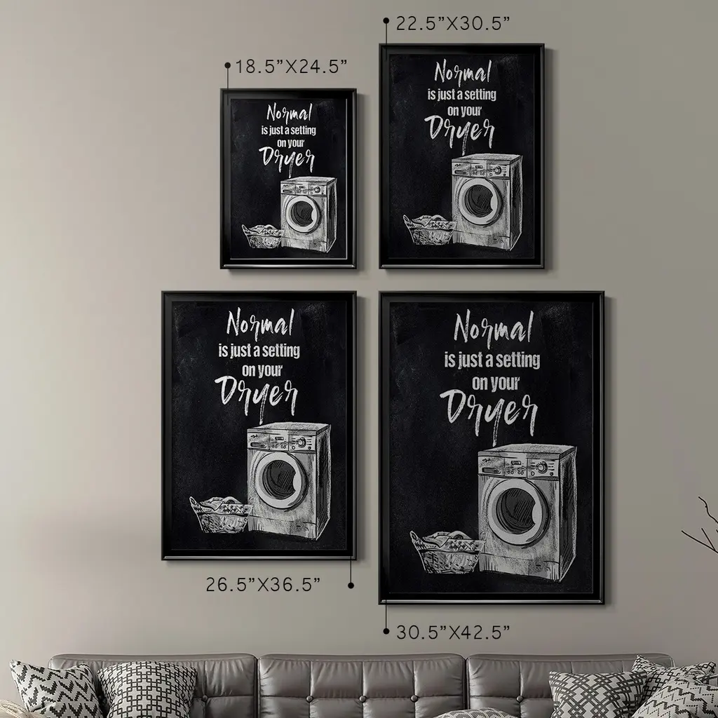 Normal Is Just A Setting Premium Framed Print - Ready to Hang A Premium Framed Print created to last. Framed in distressed wood and available in an array of sizes and colors Featuring a beveled a solid wood stretcher bar, each piece comes ready to hand 4 SIZES AVAILABLE 30.5''X42.5'' - Overall Size 26.5'X36.5'' - Overall Size 22.5''x30.5'' - Overall Size 18.5''x24.5'' - Overall Size Each piece is made to order. Each piece comes with hanging hardware. Made in the USA Ready to Hang
