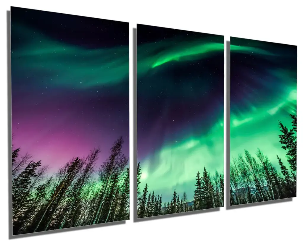 "Northern Light In Iceland" Photo Metal Wall Art, 3 Panels, 36"x28"