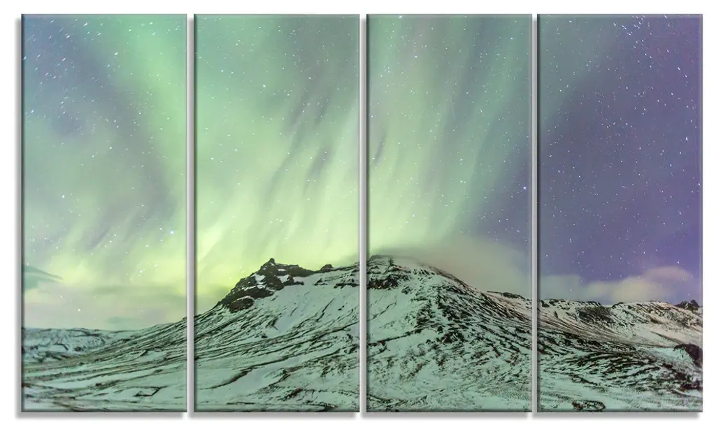 Bring contemporary abstraction to your home with this large 36W x 28H Metal Wall Art. This Northern Light in Iceland Metal Artwork makes it the focal point of any room or office. - White gloss coating ensures colors are extra vibrant with light reflection.- Aluminum grade sheet metal with 1-inch mounting frame on the back giving the illusion that the artwork is floating on the wall.- Mounting brackets are included along with instructions.- High quality digital images are created directly into a glossy aluminum panel producing a stunning and captivating print into the glossy finish of the metal.- Water, fire and scratch resistant HD aluminum panels.- Looks better than any photo paper and guaranteed to last at least 20 years- Easy to clean with a microfiber cloth. Colors are far superior to regular canvas art. - Easy to hang