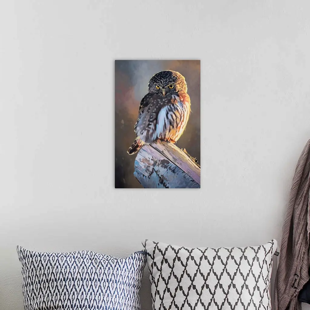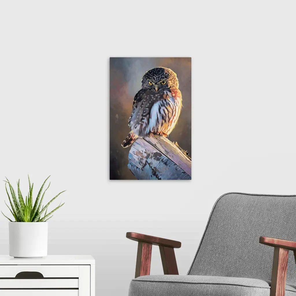 A contemporary painting of a pygmy owl.