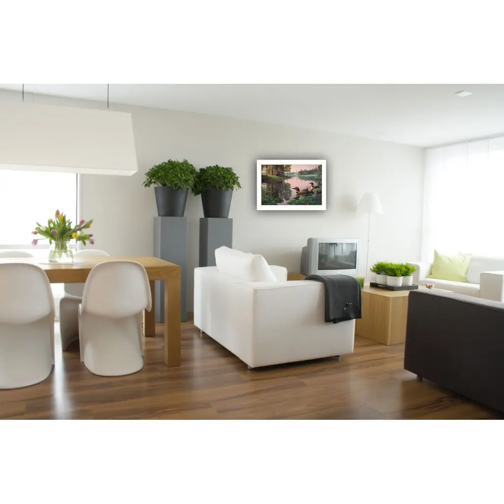 The northern tranquility 2 white framed print wall art is the perfect decorative accessory for your home. This print is a visual artistic expression that allows you to decorate your space in style. Reproduced for you on paper, this hanging decorative accent will be a trendy and fashionable way to dress your walls. Adding this hanging wall art to your space to make your room feel more finished and attractive. Instantly liven up your space with this art that brings color and dimension to your walls. 14" H x 20" W x 1" D