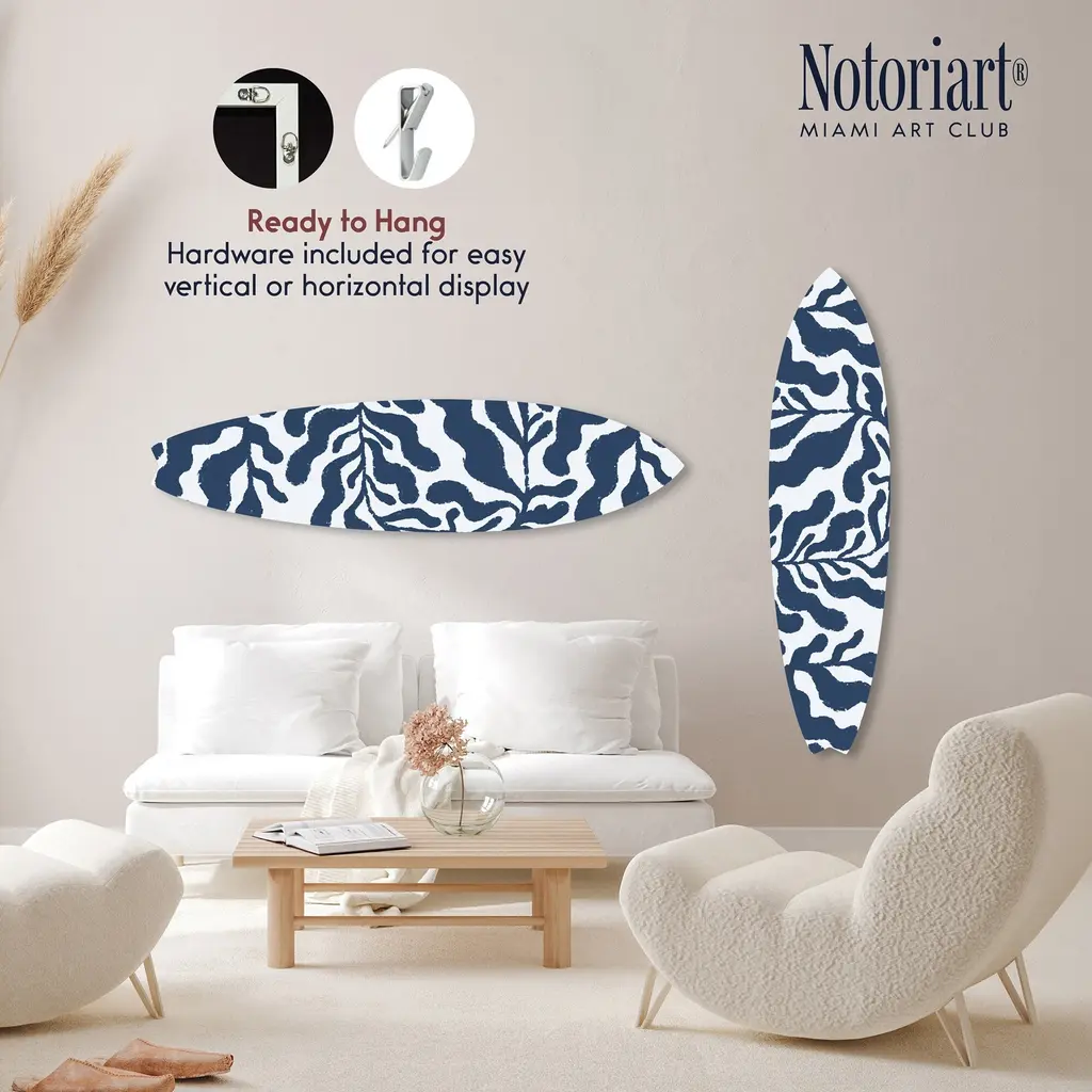 Notoriart Blue And White Leaf Ii Surfboard Acrylic Wall Art Die-Cut Coastal Modern High-Gloss Home Decor, 15" X 60" - 15" X 60"
