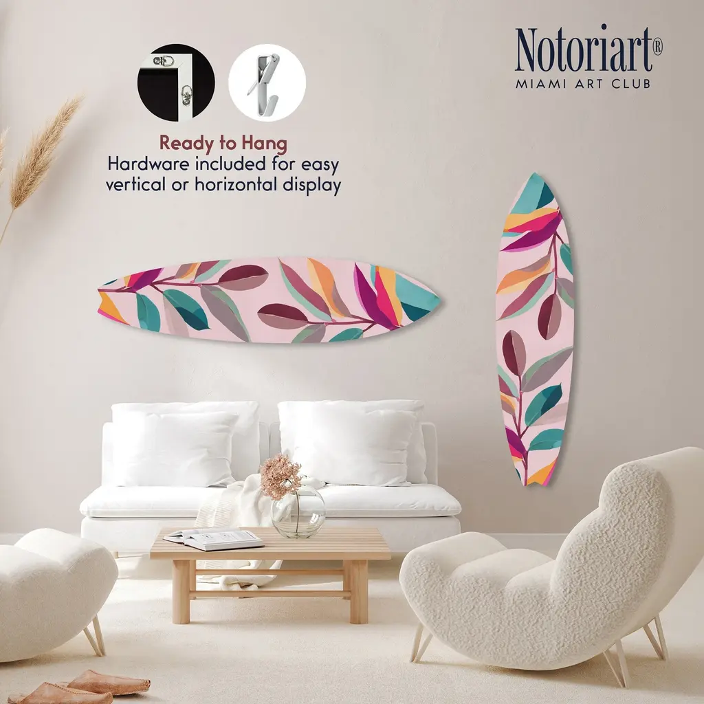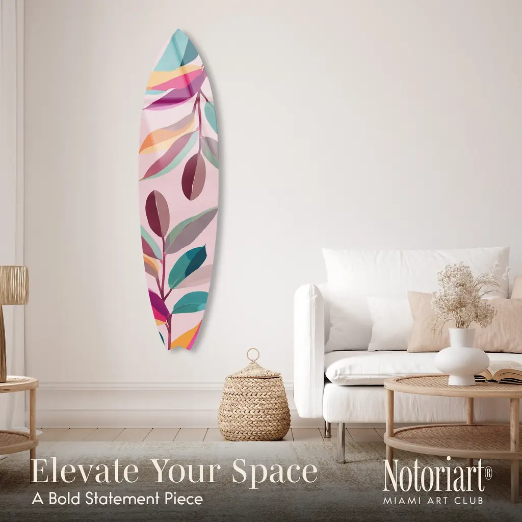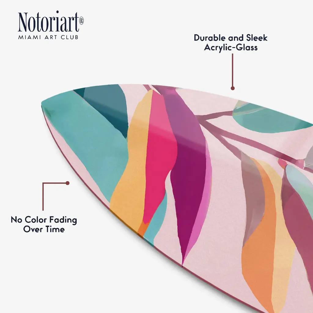 Notoriart Bold Modern Color Leaf Surfboard Acrylic Wall Art Die-Cut Coastal Modern High-Gloss Home Decor, 15" X 60" - 15" X 60"