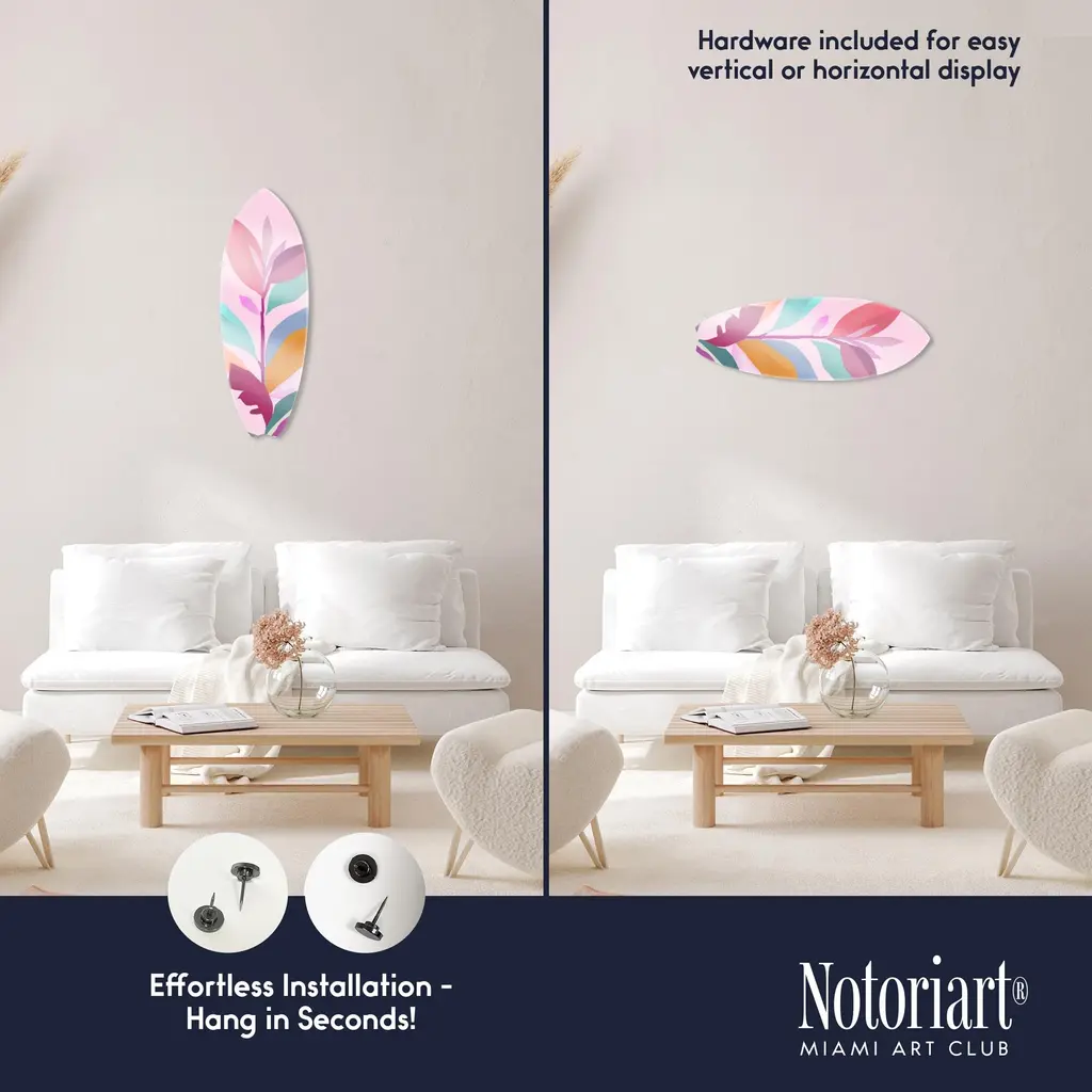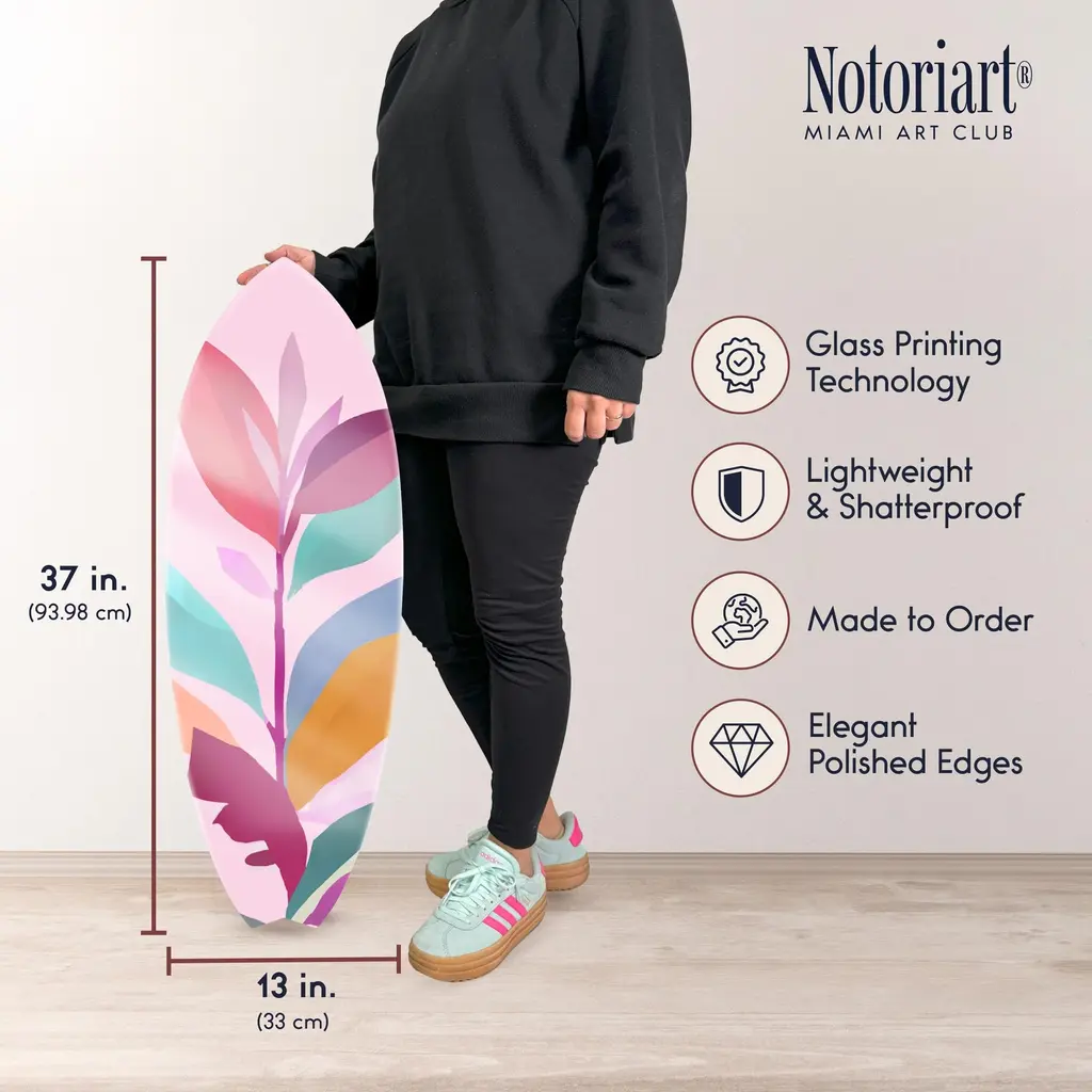 Elevate your home decor with NOTORIART's bold and exclusive Acrylic Glass Skimboard Wall Art. Handcrafted in Miami and made-to-order, this decorative skimboard is more than just coastal decor—it's a statement piece designed to reflect your unique style. Made from high-quality die-cut acrylic glass, it boasts a vibrant, high-gloss finish that brings depth, movement, and life to any space. Whether you're looking to capture the essence of coastal living or seeking a modern art piece to enhance your room, this skimboard offers versatile display options, hanging both horizontally and vertically. Featuring just 2 small holes, it comes with 4 durable aluminum thumbtacks (2 black, 2 silver) for effortless hanging—no complicated tools required. Bring the essence of Miami's artistic flair into your home with a decor item that blends sophistication, authenticity, and individuality.Features: Interior Designers Note: Crafted from die-cut acrylic glass, this decorative skimboard brings bold, vibrant energy to any space. Its hand-polished, glass-like finish creates depth and movement, making it a standout piece in modern decor.Simple, Sleek Hanging Solution: With just 2 small holes and 4 sturdy aluminum thumbtacks provided (2 black, 2 silver), hanging this art is effortless. Push the thumbtacks into the wall—no tools or measuring needed.Handcrafted Excellence: Each piece is meticulously made to order in Miami, reflecting the unique style and quality of NOTORIART's designs. Our skilled artisans ensure attention to detail, producing a luxurious, standout decor item.Premium Materials & Secure Packaging: Constructed from high-quality die-cut acrylic glass with a vibrant, high-gloss finish, this skimboard arrives securely packaged to ensure it reaches you in pristine condition. Exclusive Statement Piece: Inspired by Miami's vibrant art scene, this decorative skimboard merges modern design with coastal influences. Ideal for any room, it brings a touch of refined elegance and individuality to your home or office.Wipe clean with a soft, dry microfiber cloth. Avoid using water or cleaning sprays to maintain the high-gloss finish. Not suitable for outdoor use.
