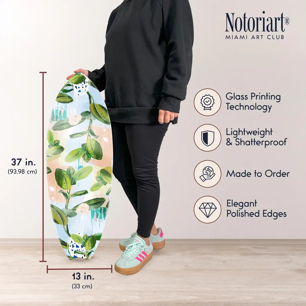Elevate your home decor with NOTORIART's bold and exclusive Acrylic Glass Skimboard Wall Art. Handcrafted in Miami and made-to-order, this decorative skimboard is more than just coastal decor—it's a statement piece designed to reflect your unique style. Made from high-quality die-cut acrylic glass, it boasts a vibrant, high-gloss finish that brings depth, movement, and life to any space. Whether you're looking to capture the essence of coastal living or seeking a modern art piece to enhance your room, this skimboard offers versatile display options, hanging both horizontally and vertically. Featuring just 2 small holes, it comes with 4 durable aluminum thumbtacks (2 black, 2 silver) for effortless hanging—no complicated tools required. Bring the essence of Miami's artistic flair into your home with a decor item that blends sophistication, authenticity, and individuality.Features: Interior Designers Note: Crafted from die-cut acrylic glass, this decorative skimboard brings bold, vibrant energy to any space. Its hand-polished, glass-like finish creates depth and movement, making it a standout piece in modern decor.Simple, Sleek Hanging Solution: With just 2 small holes and 4 sturdy aluminum thumbtacks provided (2 black, 2 silver), hanging this art is effortless. Push the thumbtacks into the wall—no tools or measuring needed.Handcrafted Excellence: Each piece is meticulously made to order in Miami, reflecting the unique style and quality of NOTORIART's designs. Our skilled artisans ensure attention to detail, producing a luxurious, standout decor item.Premium Materials & Secure Packaging: Constructed from high-quality die-cut acrylic glass with a vibrant, high-gloss finish, this skimboard arrives securely packaged to ensure it reaches you in pristine condition. Exclusive Statement Piece: Inspired by Miami's vibrant art scene, this decorative skimboard merges modern design with coastal influences. Ideal for any room, it brings a touch of refined elegance and individuality to your home or office.Wipe clean with a soft, dry microfiber cloth. Avoid using water or cleaning sprays to maintain the high-gloss finish. Not suitable for outdoor use.
