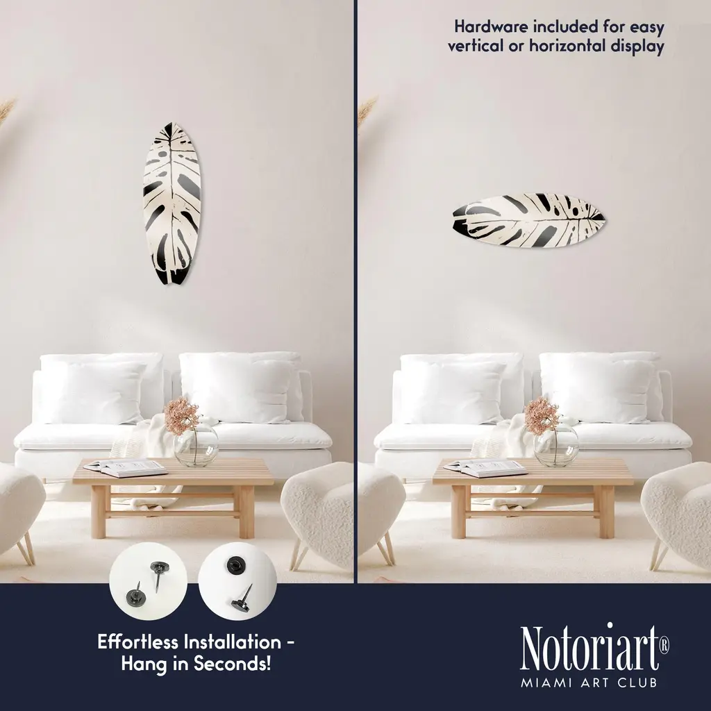 Elevate your home decor with NOTORIART's bold and exclusive Acrylic Glass Skimboard Wall Art. Handcrafted in Miami and made-to-order, this decorative skimboard is more than just coastal decor—it's a statement piece designed to reflect your unique style. Made from high-quality die-cut acrylic glass, it boasts a vibrant, high-gloss finish that brings depth, movement, and life to any space. Whether you're looking to capture the essence of coastal living or seeking a modern art piece to enhance your room, this skimboard offers versatile display options, hanging both horizontally and vertically. Featuring just 2 small holes, it comes with 4 durable aluminum thumbtacks (2 black, 2 silver) for effortless hanging—no complicated tools required. Bring the essence of Miami's artistic flair into your home with a decor item that blends sophistication, authenticity, and individuality.Features: Interior Designers Note: Crafted from die-cut acrylic glass, this decorative skimboard brings bold, vibrant energy to any space. Its hand-polished, glass-like finish creates depth and movement, making it a standout piece in modern decor.Simple, Sleek Hanging Solution: With just 2 small holes and 4 sturdy aluminum thumbtacks provided (2 black, 2 silver), hanging this art is effortless. Push the thumbtacks into the wall—no tools or measuring needed.Handcrafted Excellence: Each piece is meticulously made to order in Miami, reflecting the unique style and quality of NOTORIART's designs. Our skilled artisans ensure attention to detail, producing a luxurious, standout decor item.Premium Materials & Secure Packaging: Constructed from high-quality die-cut acrylic glass with a vibrant, high-gloss finish, this skimboard arrives securely packaged to ensure it reaches you in pristine condition. Exclusive Statement Piece: Inspired by Miami's vibrant art scene, this decorative skimboard merges modern design with coastal influences. Ideal for any room, it brings a touch of refined elegance and individuality to your home or office.Wipe clean with a soft, dry microfiber cloth. Avoid using water or cleaning sprays to maintain the high-gloss finish. Not suitable for outdoor use.
