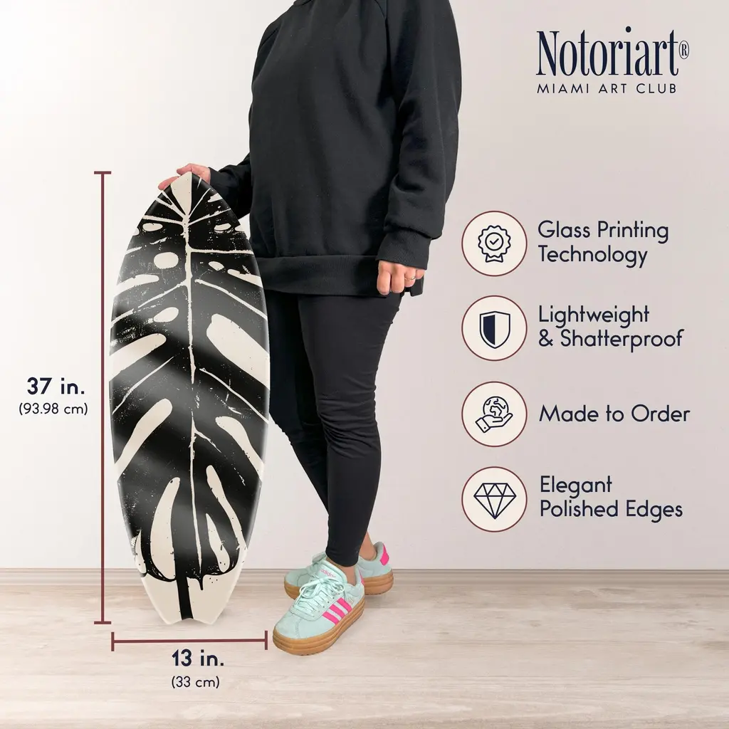 Elevate your home decor with NOTORIART's bold and exclusive Acrylic Glass Skimboard Wall Art. Handcrafted in Miami and made-to-order, this decorative skimboard is more than just coastal decor—it's a statement piece designed to reflect your unique style. Made from high-quality die-cut acrylic glass, it boasts a vibrant, high-gloss finish that brings depth, movement, and life to any space. Whether you're looking to capture the essence of coastal living or seeking a modern art piece to enhance your room, this skimboard offers versatile display options, hanging both horizontally and vertically. Featuring just 2 small holes, it comes with 4 durable aluminum thumbtacks (2 black, 2 silver) for effortless hanging—no complicated tools required. Bring the essence of Miami's artistic flair into your home with a decor item that blends sophistication, authenticity, and individuality.Features: Interior Designers Note: Crafted from die-cut acrylic glass, this decorative skimboard brings bold, vibrant energy to any space. Its hand-polished, glass-like finish creates depth and movement, making it a standout piece in modern decor.Simple, Sleek Hanging Solution: With just 2 small holes and 4 sturdy aluminum thumbtacks provided (2 black, 2 silver), hanging this art is effortless. Push the thumbtacks into the wall—no tools or measuring needed.Handcrafted Excellence: Each piece is meticulously made to order in Miami, reflecting the unique style and quality of NOTORIART's designs. Our skilled artisans ensure attention to detail, producing a luxurious, standout decor item.Premium Materials & Secure Packaging: Constructed from high-quality die-cut acrylic glass with a vibrant, high-gloss finish, this skimboard arrives securely packaged to ensure it reaches you in pristine condition. Exclusive Statement Piece: Inspired by Miami's vibrant art scene, this decorative skimboard merges modern design with coastal influences. Ideal for any room, it brings a touch of refined elegance and individuality to your home or office.Wipe clean with a soft, dry microfiber cloth. Avoid using water or cleaning sprays to maintain the high-gloss finish. Not suitable for outdoor use.