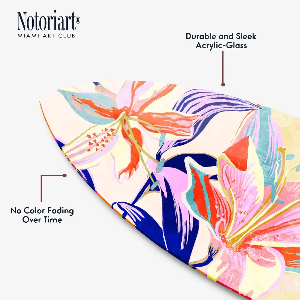 Notoriart Floral Hue Abstract Surfboard Acrylic Wall Art Die-Cut Coastal Modern High-Gloss Home Decor, 15" X 60" - 15" X 60"