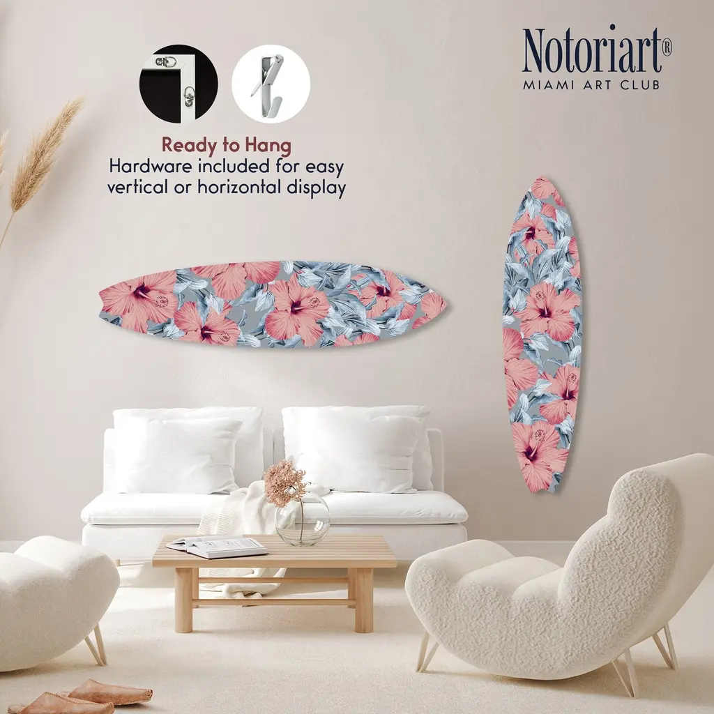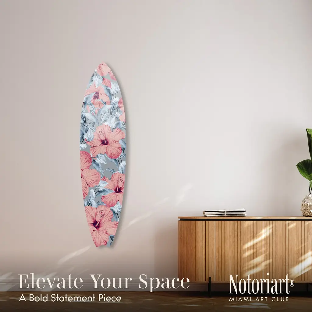 Elevate your home decor with NOTORIART's bold and exclusive Acrylic Glass Surfboard Wall Art. Handcrafted in Miami and made-to-order, this decorative surfboard is more than just coastal decor—it's a statement piece designed to reflect your unique style. Made from high-quality die-cut acrylic glass, it boasts a vibrant, high-gloss finish that brings depth, movement, and life to any space. Whether you're looking to capture the essence of coastal living or seeking a modern art piece to enhance your room, this surfboard offers versatile display options, hanging both horizontally and vertically. Each piece is carefully crafted with a wooden frame for easy installation and long-lasting durability. Bring the essence of Miami's artistic flair into your home with a decor item that blends sophistication, authenticity, and individuality.Features: Interior Designers Note: Crafted from die-cut acrylic glass, this decorative surfboard brings bold, vibrant energy to any space. Its hand-polished, glass-like finish creates depth and movement, making it a standout piece in modern decor.Versatile Display Options: This statement piece can be hung both horizontally and vertically. Pre-installed with a wooden frame, hanging hardware, and nails included, it arrives ready to hang. Size per panel: 15"x 60"Handcrafted Excellence: Each piece is meticulously made to order in Miami, reflecting the unique style and quality of NOTORIART's designs. Our skilled artisans ensure attention to detail, producing a luxurious, standout decor item.Premium Materials & Secure Packaging: Constructed from high-quality die-cut acrylic glass with a vibrant, high-gloss finish, this surfboard arrives securely packaged to ensure it reaches you in pristine condition. The wooden frame provides durability and long-lasting beauty.Exclusive Statement Piece: Inspired by Miami's vibrant art scene, this decorative surfboard merges modern design with coastal influences. Ideal for any room, it brings a touch of refined elegance and individuality to your home or office.Wipe clean with a soft, dry microfiber cloth. Avoid using water or cleaning sprays to maintain the high-gloss finish. Not suitable for outdoor use.