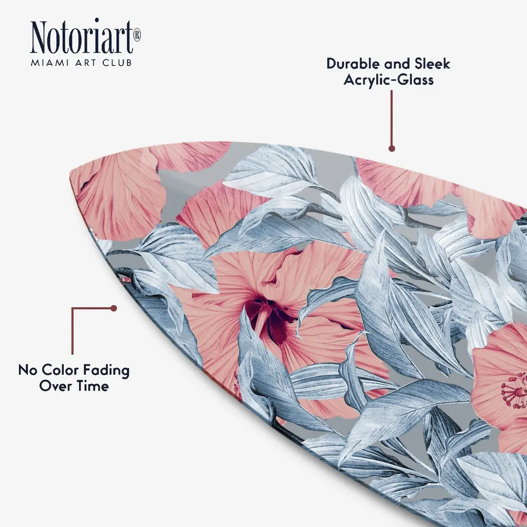 Notoriart La Flora Surfboard Acrylic Wall Art Die-Cut Coastal Modern High-Gloss Home Decor, 15" X 60" - 15" X 60"