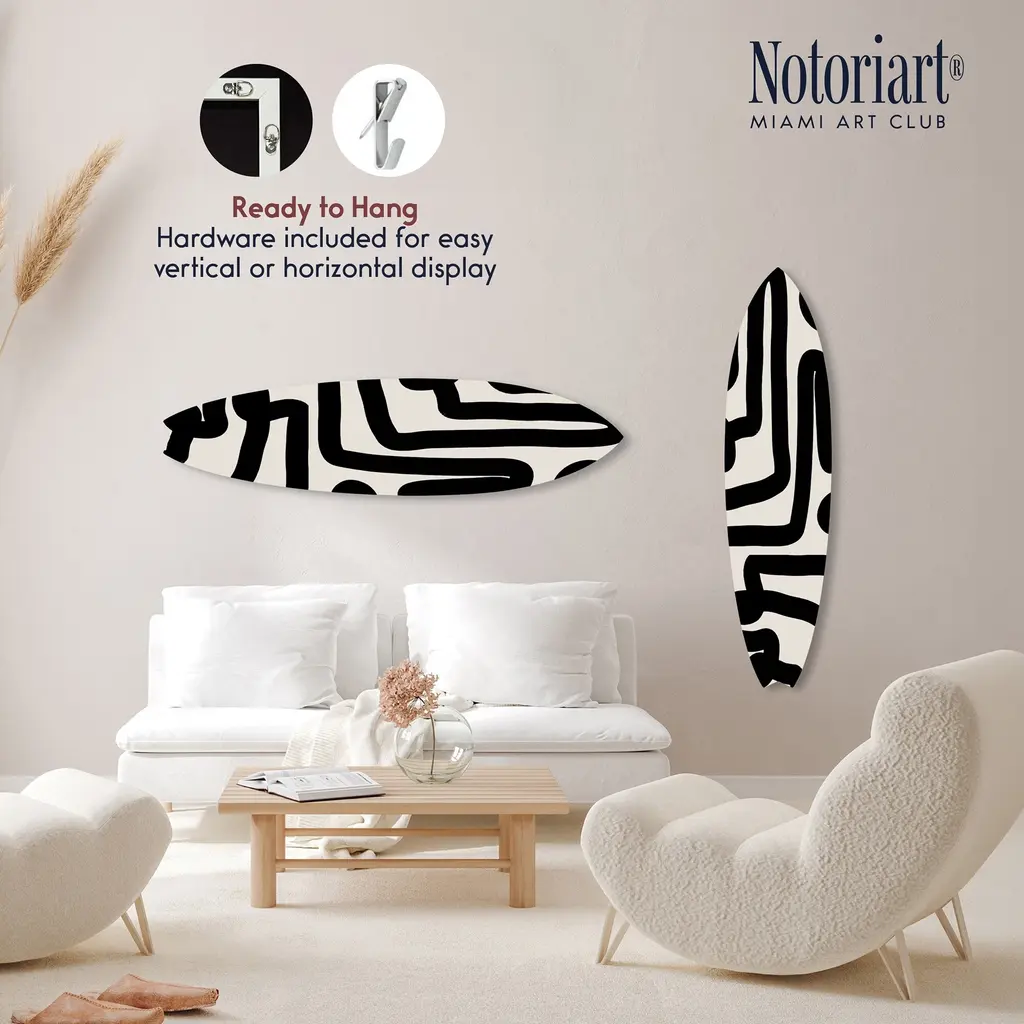 Elevate your home decor with NOTORIART's bold and exclusive Acrylic Glass Surfboard Wall Art. Handcrafted in Miami and made-to-order, this decorative surfboard is more than just coastal decor—it's a statement piece designed to reflect your unique style. Made from high-quality die-cut acrylic glass, it boasts a vibrant, high-gloss finish that brings depth, movement, and life to any space. Whether you're looking to capture the essence of coastal living or seeking a modern art piece to enhance your room, this surfboard offers versatile display options, hanging both horizontally and vertically. Each piece is carefully crafted with a wooden frame for easy installation and long-lasting durability. Bring the essence of Miami's artistic flair into your home with a decor item that blends sophistication, authenticity, and individuality.Features: Interior Designers Note: Crafted from die-cut acrylic glass, this decorative surfboard brings bold, vibrant energy to any space. Its hand-polished, glass-like finish creates depth and movement, making it a standout piece in modern decor.Versatile Display Options: This statement piece can be hung both horizontally and vertically. Pre-installed with a wooden frame, hanging hardware, and nails included, it arrives ready to hang. Size per panel: 15"x 60"Handcrafted Excellence: Each piece is meticulously made to order in Miami, reflecting the unique style and quality of NOTORIART's designs. Our skilled artisans ensure attention to detail, producing a luxurious, standout decor item.Premium Materials & Secure Packaging: Constructed from high-quality die-cut acrylic glass with a vibrant, high-gloss finish, this surfboard arrives securely packaged to ensure it reaches you in pristine condition. The wooden frame provides durability and long-lasting beauty.Exclusive Statement Piece: Inspired by Miami's vibrant art scene, this decorative surfboard merges modern design with coastal influences. Ideal for any room, it brings a touch of refined elegance and individuality to your home or office.Wipe clean with a soft, dry microfiber cloth. Avoid using water or cleaning sprays to maintain the high-gloss finish. Not suitable for outdoor use.