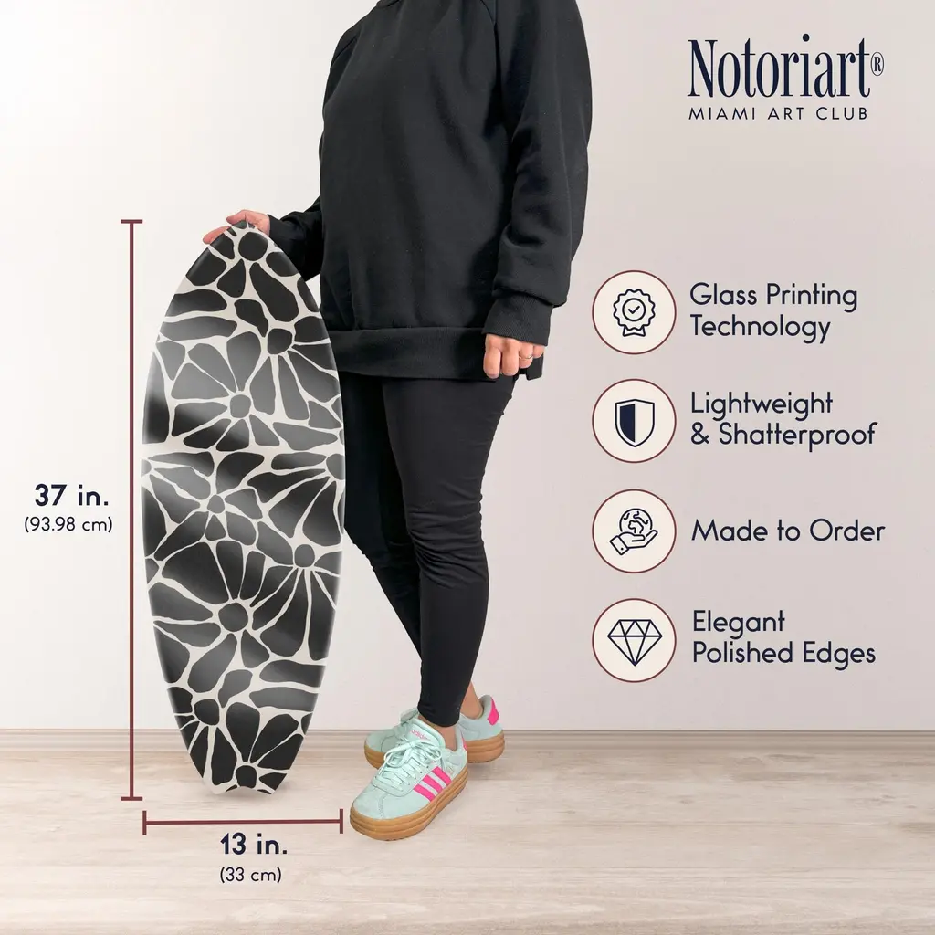 Elevate your home decor with NOTORIART's bold and exclusive Acrylic Glass Skimboard Wall Art. Handcrafted in Miami and made-to-order, this decorative skimboard is more than just coastal decor—it's a statement piece designed to reflect your unique style. Made from high-quality die-cut acrylic glass, it boasts a vibrant, high-gloss finish that brings depth, movement, and life to any space. Whether you're looking to capture the essence of coastal living or seeking a modern art piece to enhance your room, this skimboard offers versatile display options, hanging both horizontally and vertically. Featuring just 2 small holes, it comes with 4 durable aluminum thumbtacks (2 black, 2 silver) for effortless hanging—no complicated tools required. Bring the essence of Miami's artistic flair into your home with a decor item that blends sophistication, authenticity, and individuality.Features: Interior Designers Note: Crafted from die-cut acrylic glass, this decorative skimboard brings bold, vibrant energy to any space. Its hand-polished, glass-like finish creates depth and movement, making it a standout piece in modern decor.Simple, Sleek Hanging Solution: With just 2 small holes and 4 sturdy aluminum thumbtacks provided (2 black, 2 silver), hanging this art is effortless. Push the thumbtacks into the wall—no tools or measuring needed.Handcrafted Excellence: Each piece is meticulously made to order in Miami, reflecting the unique style and quality of NOTORIART's designs. Our skilled artisans ensure attention to detail, producing a luxurious, standout decor item.Premium Materials & Secure Packaging: Constructed from high-quality die-cut acrylic glass with a vibrant, high-gloss finish, this skimboard arrives securely packaged to ensure it reaches you in pristine condition. Exclusive Statement Piece: Inspired by Miami's vibrant art scene, this decorative skimboard merges modern design with coastal influences. Ideal for any room, it brings a touch of refined elegance and individuality to your home or office.Wipe clean with a soft, dry microfiber cloth. Avoid using water or cleaning sprays to maintain the high-gloss finish. Not suitable for outdoor use.