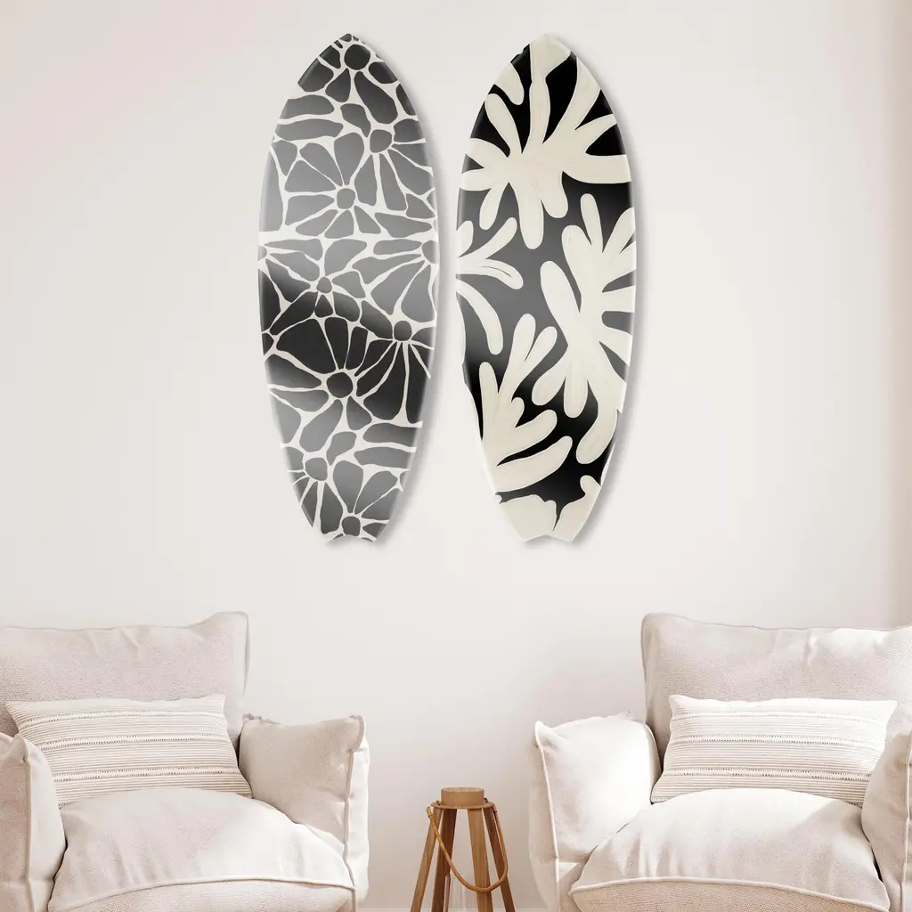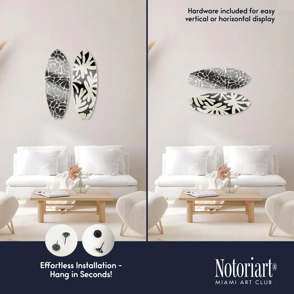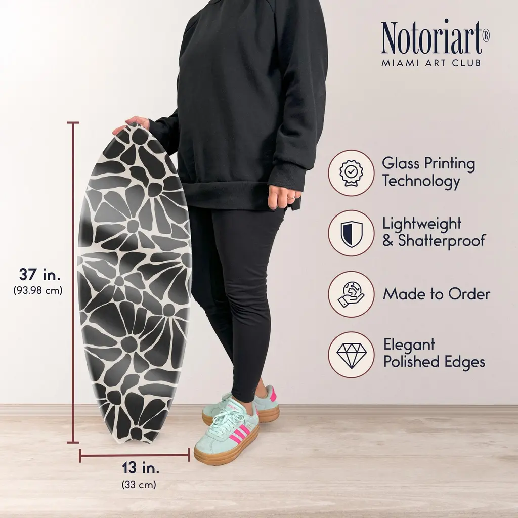 Elevate your home decor with NOTORIART's bold and exclusive Acrylic Glass Skimboard Wall Art. Handcrafted in Miami and made-to-order, this decorative skimboard is more than just coastal decor—it's a statement piece designed to reflect your unique style. Made from high-quality die-cut acrylic glass, it boasts a vibrant, high-gloss finish that brings depth, movement, and life to any space. Whether you're looking to capture the essence of coastal living or seeking a modern art piece to enhance your room, this skimboard offers versatile display options, hanging both horizontally and vertically. Featuring just 2 small holes, it comes with 4 durable aluminum thumbtacks (2 black, 2 silver) for effortless hanging—no complicated tools required. Bring the essence of Miami's artistic flair into your home with a decor item that blends sophistication, authenticity, and individuality.Features: Interior Designers Note: Crafted from die-cut acrylic glass, this decorative skimboard brings bold, vibrant energy to any space. Its hand-polished, glass-like finish creates depth and movement, making it a standout piece in modern decor.Simple, Sleek Hanging Solution: With just 2 small holes and 4 sturdy aluminum thumbtacks provided (2 black, 2 silver), hanging this art is effortless. Push the thumbtacks into the wall—no tools or measuring needed.Handcrafted Excellence: Each piece is meticulously made to order in Miami, reflecting the unique style and quality of NOTORIART's designs. Our skilled artisans ensure attention to detail, producing a luxurious, standout decor item.Premium Materials & Secure Packaging: Constructed from high-quality die-cut acrylic glass with a vibrant, high-gloss finish, this skimboard arrives securely packaged to ensure it reaches you in pristine condition. Exclusive Statement Piece: Inspired by Miami's vibrant art scene, this decorative skimboard merges modern design with coastal influences. Ideal for any room, it brings a touch of refined elegance and individuality to your home or office.Wipe clean with a soft, dry microfiber cloth. Avoid using water or cleaning sprays to maintain the high-gloss finish. Not suitable for outdoor use.