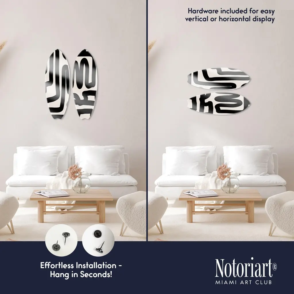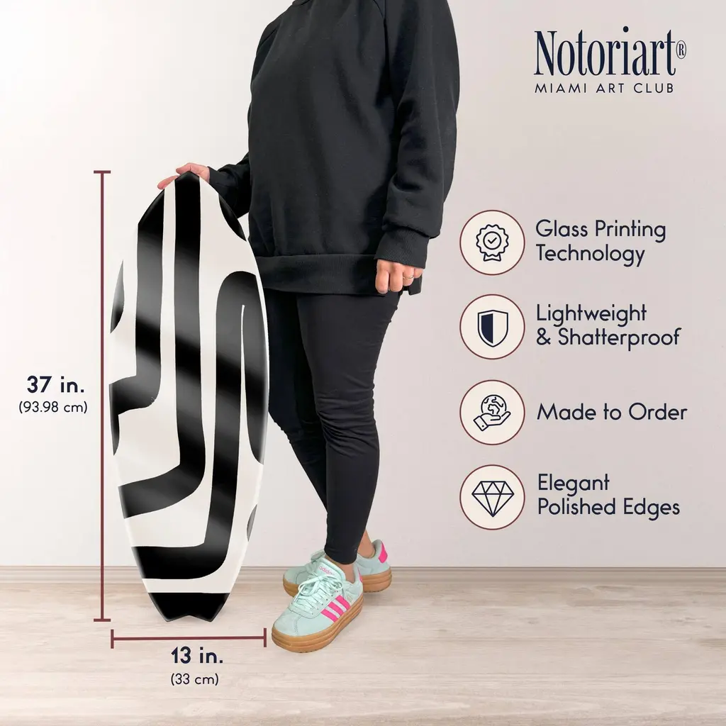Elevate your home decor with NOTORIART's bold and exclusive Acrylic Glass Skimboard Wall Art. Handcrafted in Miami and made-to-order, this decorative skimboard is more than just coastal decor—it's a statement piece designed to reflect your unique style. Made from high-quality die-cut acrylic glass, it boasts a vibrant, high-gloss finish that brings depth, movement, and life to any space. Whether you're looking to capture the essence of coastal living or seeking a modern art piece to enhance your room, this skimboard offers versatile display options, hanging both horizontally and vertically. Featuring just 2 small holes, it comes with 4 durable aluminum thumbtacks (2 black, 2 silver) for effortless hanging—no complicated tools required. Bring the essence of Miami's artistic flair into your home with a decor item that blends sophistication, authenticity, and individuality.Features: Interior Designers Note: Crafted from die-cut acrylic glass, this decorative skimboard brings bold, vibrant energy to any space. Its hand-polished, glass-like finish creates depth and movement, making it a standout piece in modern decor.Simple, Sleek Hanging Solution: With just 2 small holes and 4 sturdy aluminum thumbtacks provided (2 black, 2 silver), hanging this art is effortless. Push the thumbtacks into the wall—no tools or measuring needed.Handcrafted Excellence: Each piece is meticulously made to order in Miami, reflecting the unique style and quality of NOTORIART's designs. Our skilled artisans ensure attention to detail, producing a luxurious, standout decor item.Premium Materials & Secure Packaging: Constructed from high-quality die-cut acrylic glass with a vibrant, high-gloss finish, this skimboard arrives securely packaged to ensure it reaches you in pristine condition. Exclusive Statement Piece: Inspired by Miami's vibrant art scene, this decorative skimboard merges modern design with coastal influences. Ideal for any room, it brings a touch of refined elegance and individuality to your home or office.Wipe clean with a soft, dry microfiber cloth. Avoid using water or cleaning sprays to maintain the high-gloss finish. Not suitable for outdoor use.
