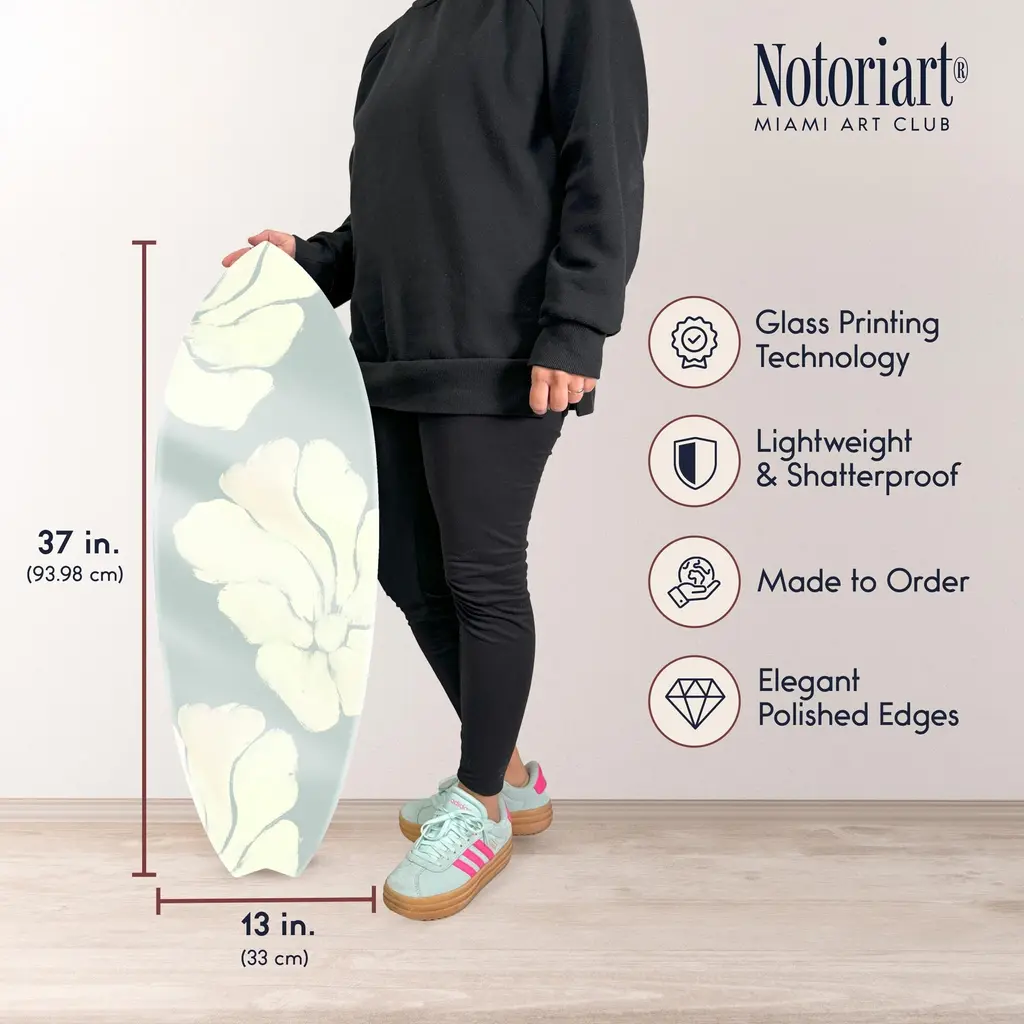 Elevate your home decor with NOTORIART's bold and exclusive Acrylic Glass Skimboard Wall Art. Handcrafted in Miami and made-to-order, this decorative skimboard is more than just coastal decor—it's a statement piece designed to reflect your unique style. Made from high-quality die-cut acrylic glass, it boasts a vibrant, high-gloss finish that brings depth, movement, and life to any space. Whether you're looking to capture the essence of coastal living or seeking a modern art piece to enhance your room, this skimboard offers versatile display options, hanging both horizontally and vertically. Featuring just 2 small holes, it comes with 4 durable aluminum thumbtacks (2 black, 2 silver) for effortless hanging—no complicated tools required. Bring the essence of Miami's artistic flair into your home with a decor item that blends sophistication, authenticity, and individuality.Features: Interior Designers Note: Crafted from die-cut acrylic glass, this decorative skimboard brings bold, vibrant energy to any space. Its hand-polished, glass-like finish creates depth and movement, making it a standout piece in modern decor.Simple, Sleek Hanging Solution: With just 2 small holes and 4 sturdy aluminum thumbtacks provided (2 black, 2 silver), hanging this art is effortless. Push the thumbtacks into the wall—no tools or measuring needed.Handcrafted Excellence: Each piece is meticulously made to order in Miami, reflecting the unique style and quality of NOTORIART's designs. Our skilled artisans ensure attention to detail, producing a luxurious, standout decor item.Premium Materials & Secure Packaging: Constructed from high-quality die-cut acrylic glass with a vibrant, high-gloss finish, this skimboard arrives securely packaged to ensure it reaches you in pristine condition. Exclusive Statement Piece: Inspired by Miami's vibrant art scene, this decorative skimboard merges modern design with coastal influences. Ideal for any room, it brings a touch of refined elegance and individuality to your home or office.Wipe clean with a soft, dry microfiber cloth. Avoid using water or cleaning sprays to maintain the high-gloss finish. Not suitable for outdoor use.