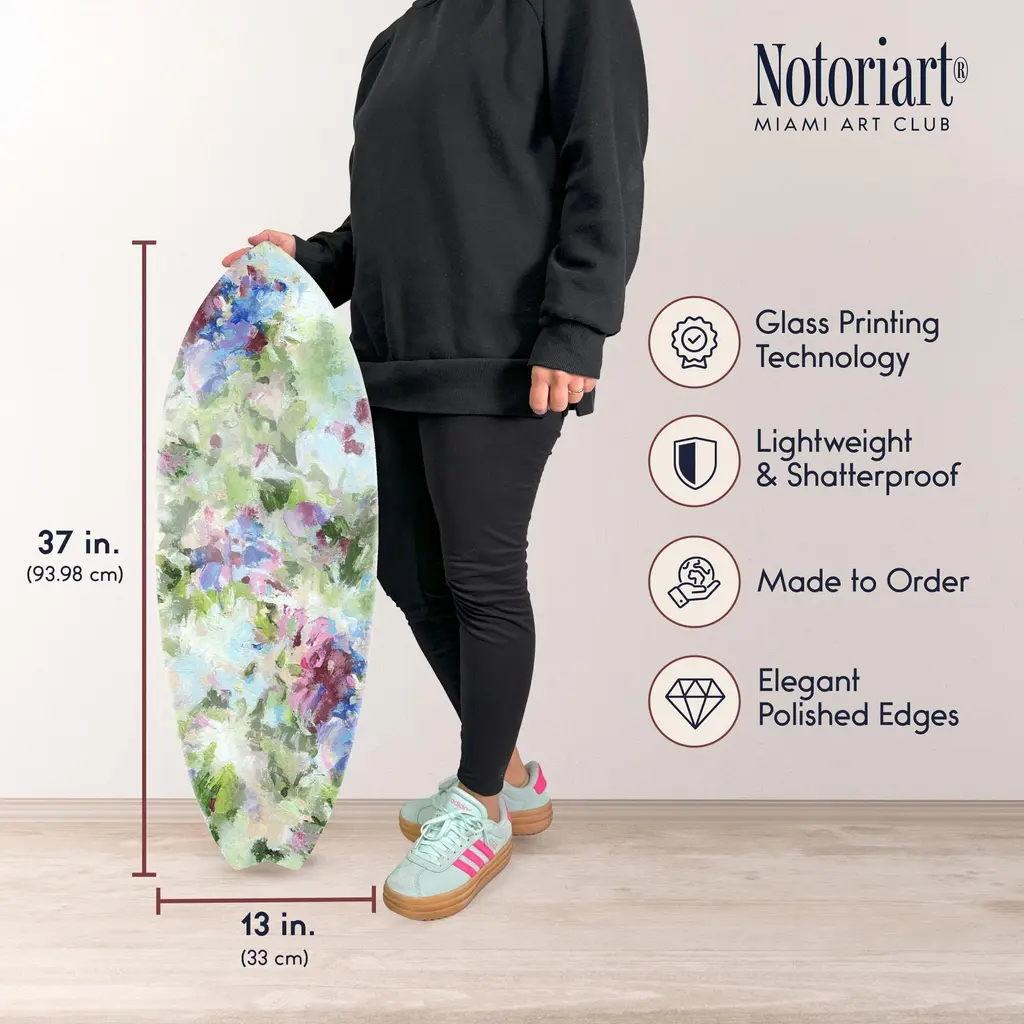 Elevate your home decor with NOTORIART's bold and exclusive Acrylic Glass Skimboard Wall Art. Handcrafted in Miami and made-to-order, this decorative skimboard is more than just coastal decor—it's a statement piece designed to reflect your unique style. Made from high-quality die-cut acrylic glass, it boasts a vibrant, high-gloss finish that brings depth, movement, and life to any space. Whether you're looking to capture the essence of coastal living or seeking a modern art piece to enhance your room, this skimboard offers versatile display options, hanging both horizontally and vertically. Featuring just 2 small holes, it comes with 4 durable aluminum thumbtacks (2 black, 2 silver) for effortless hanging—no complicated tools required. Bring the essence of Miami's artistic flair into your home with a decor item that blends sophistication, authenticity, and individuality.Features: Interior Designers Note: Crafted from die-cut acrylic glass, this decorative skimboard brings bold, vibrant energy to any space. Its hand-polished, glass-like finish creates depth and movement, making it a standout piece in modern decor.Simple, Sleek Hanging Solution: With just 2 small holes and 4 sturdy aluminum thumbtacks provided (2 black, 2 silver), hanging this art is effortless. Push the thumbtacks into the wall—no tools or measuring needed.Handcrafted Excellence: Each piece is meticulously made to order in Miami, reflecting the unique style and quality of NOTORIART's designs. Our skilled artisans ensure attention to detail, producing a luxurious, standout decor item.Premium Materials & Secure Packaging: Constructed from high-quality die-cut acrylic glass with a vibrant, high-gloss finish, this skimboard arrives securely packaged to ensure it reaches you in pristine condition. Exclusive Statement Piece: Inspired by Miami's vibrant art scene, this decorative skimboard merges modern design with coastal influences. Ideal for any room, it brings a touch of refined elegance and individuality to your home or office.Wipe clean with a soft, dry microfiber cloth. Avoid using water or cleaning sprays to maintain the high-gloss finish. Not suitable for outdoor use.