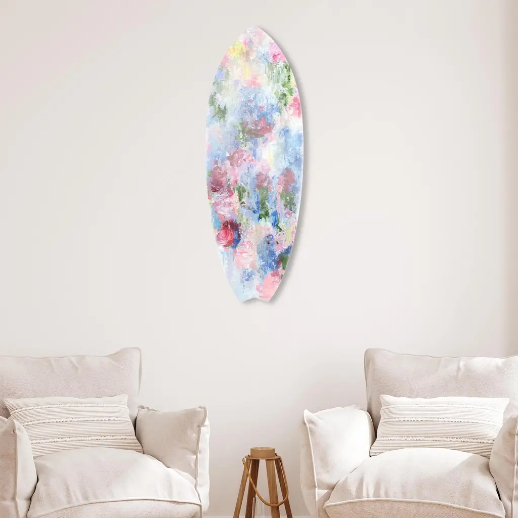 Elevate your home decor with NOTORIART's bold and exclusive Acrylic Glass Skimboard Wall Art. Handcrafted in Miami and made-to-order, this decorative skimboard is more than just coastal decor—it's a statement piece designed to reflect your unique style. Made from high-quality die-cut acrylic glass, it boasts a vibrant, high-gloss finish that brings depth, movement, and life to any space. Whether you're looking to capture the essence of coastal living or seeking a modern art piece to enhance your room, this skimboard offers versatile display options, hanging both horizontally and vertically. Featuring just 2 small holes, it comes with 4 durable aluminum thumbtacks (2 black, 2 silver) for effortless hanging—no complicated tools required. Bring the essence of Miami's artistic flair into your home with a decor item that blends sophistication, authenticity, and individuality.Features: Interior Designers Note: Crafted from die-cut acrylic glass, this decorative skimboard brings bold, vibrant energy to any space. Its hand-polished, glass-like finish creates depth and movement, making it a standout piece in modern decor.Simple, Sleek Hanging Solution: With just 2 small holes and 4 sturdy aluminum thumbtacks provided (2 black, 2 silver), hanging this art is effortless. Push the thumbtacks into the wall—no tools or measuring needed.Handcrafted Excellence: Each piece is meticulously made to order in Miami, reflecting the unique style and quality of NOTORIART's designs. Our skilled artisans ensure attention to detail, producing a luxurious, standout decor item.Premium Materials & Secure Packaging: Constructed from high-quality die-cut acrylic glass with a vibrant, high-gloss finish, this skimboard arrives securely packaged to ensure it reaches you in pristine condition. Exclusive Statement Piece: Inspired by Miami's vibrant art scene, this decorative skimboard merges modern design with coastal influences. Ideal for any room, it brings a touch of refined elegance and individuality to your home or office.Wipe clean with a soft, dry microfiber cloth. Avoid using water or cleaning sprays to maintain the high-gloss finish. Not suitable for outdoor use.