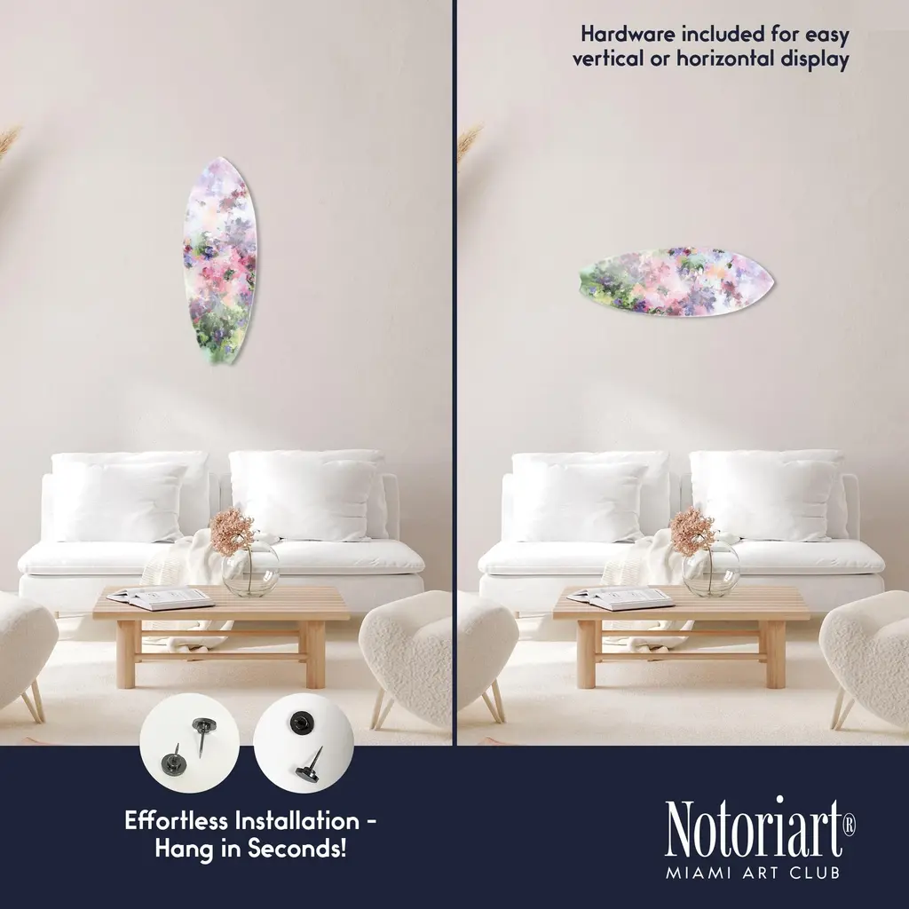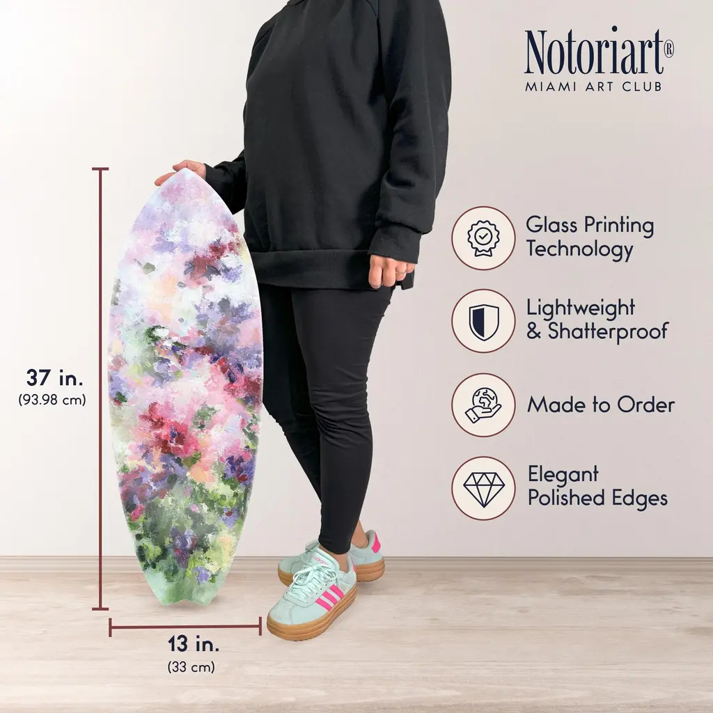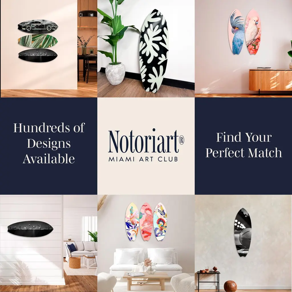 Elevate your home decor with NOTORIART's bold and exclusive Acrylic Glass Skimboard Wall Art. Handcrafted in Miami and made-to-order, this decorative skimboard is more than just coastal decor—it's a statement piece designed to reflect your unique style. Made from high-quality die-cut acrylic glass, it boasts a vibrant, high-gloss finish that brings depth, movement, and life to any space. Whether you're looking to capture the essence of coastal living or seeking a modern art piece to enhance your room, this skimboard offers versatile display options, hanging both horizontally and vertically. Featuring just 2 small holes, it comes with 4 durable aluminum thumbtacks (2 black, 2 silver) for effortless hanging—no complicated tools required. Bring the essence of Miami's artistic flair into your home with a decor item that blends sophistication, authenticity, and individuality.Features: Interior Designers Note: Crafted from die-cut acrylic glass, this decorative skimboard brings bold, vibrant energy to any space. Its hand-polished, glass-like finish creates depth and movement, making it a standout piece in modern decor.Simple, Sleek Hanging Solution: With just 2 small holes and 4 sturdy aluminum thumbtacks provided (2 black, 2 silver), hanging this art is effortless. Push the thumbtacks into the wall—no tools or measuring needed.Handcrafted Excellence: Each piece is meticulously made to order in Miami, reflecting the unique style and quality of NOTORIART's designs. Our skilled artisans ensure attention to detail, producing a luxurious, standout decor item.Premium Materials & Secure Packaging: Constructed from high-quality die-cut acrylic glass with a vibrant, high-gloss finish, this skimboard arrives securely packaged to ensure it reaches you in pristine condition. Exclusive Statement Piece: Inspired by Miami's vibrant art scene, this decorative skimboard merges modern design with coastal influences. Ideal for any room, it brings a touch of refined elegance and individuality to your home or office.Wipe clean with a soft, dry microfiber cloth. Avoid using water or cleaning sprays to maintain the high-gloss finish. Not suitable for outdoor use.