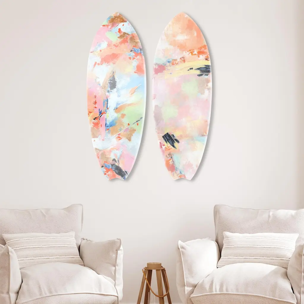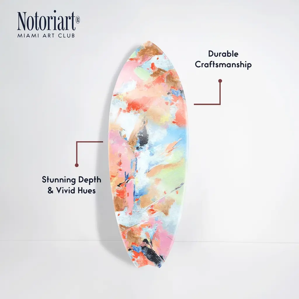 Elevate your home decor with NOTORIART's bold and exclusive Acrylic Glass Skimboard Wall Art. Handcrafted in Miami and made-to-order, this decorative skimboard is more than just coastal decor—it's a statement piece designed to reflect your unique style. Made from high-quality die-cut acrylic glass, it boasts a vibrant, high-gloss finish that brings depth, movement, and life to any space. Whether you're looking to capture the essence of coastal living or seeking a modern art piece to enhance your room, this skimboard offers versatile display options, hanging both horizontally and vertically. Featuring just 2 small holes, it comes with 4 durable aluminum thumbtacks (2 black, 2 silver) for effortless hanging—no complicated tools required. Bring the essence of Miami's artistic flair into your home with a decor item that blends sophistication, authenticity, and individuality.Features: Interior Designers Note: Crafted from die-cut acrylic glass, this decorative skimboard brings bold, vibrant energy to any space. Its hand-polished, glass-like finish creates depth and movement, making it a standout piece in modern decor.Simple, Sleek Hanging Solution: With just 2 small holes and 4 sturdy aluminum thumbtacks provided (2 black, 2 silver), hanging this art is effortless. Push the thumbtacks into the wall—no tools or measuring needed.Handcrafted Excellence: Each piece is meticulously made to order in Miami, reflecting the unique style and quality of NOTORIART's designs. Our skilled artisans ensure attention to detail, producing a luxurious, standout decor item.Premium Materials & Secure Packaging: Constructed from high-quality die-cut acrylic glass with a vibrant, high-gloss finish, this skimboard arrives securely packaged to ensure it reaches you in pristine condition. Exclusive Statement Piece: Inspired by Miami's vibrant art scene, this decorative skimboard merges modern design with coastal influences. Ideal for any room, it brings a touch of refined elegance and individuality to your home or office.Wipe clean with a soft, dry microfiber cloth. Avoid using water or cleaning sprays to maintain the high-gloss finish. Not suitable for outdoor use.